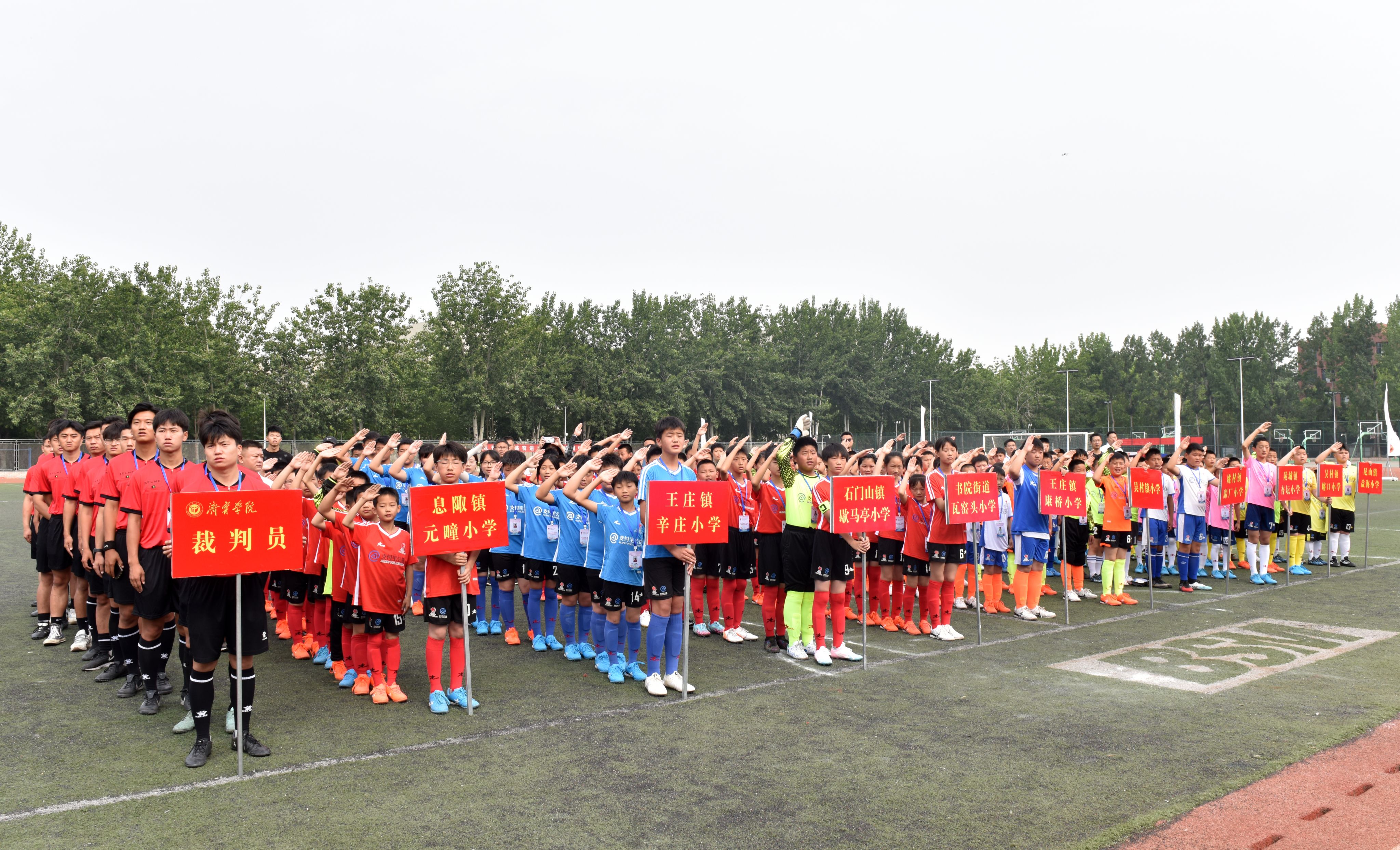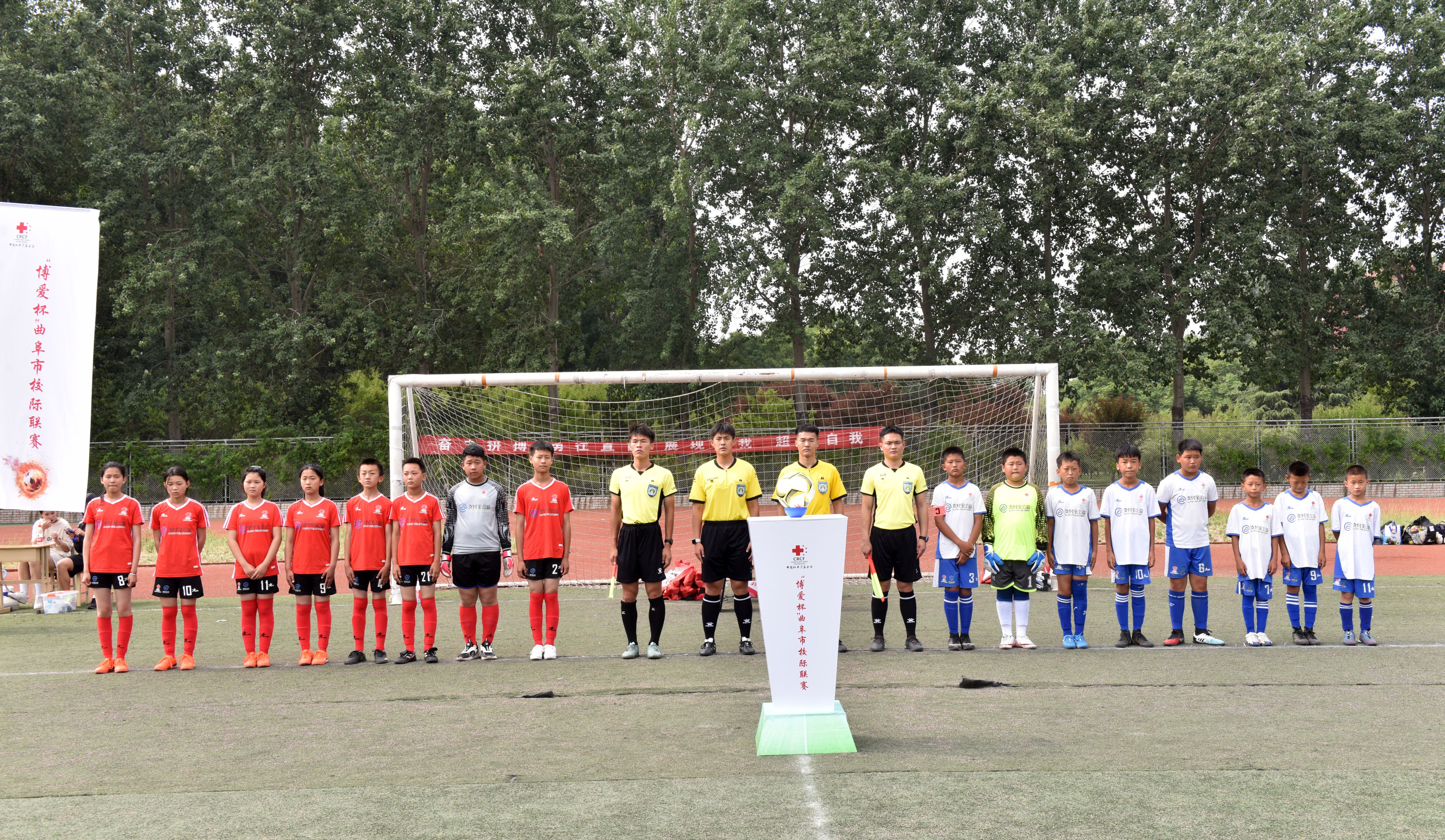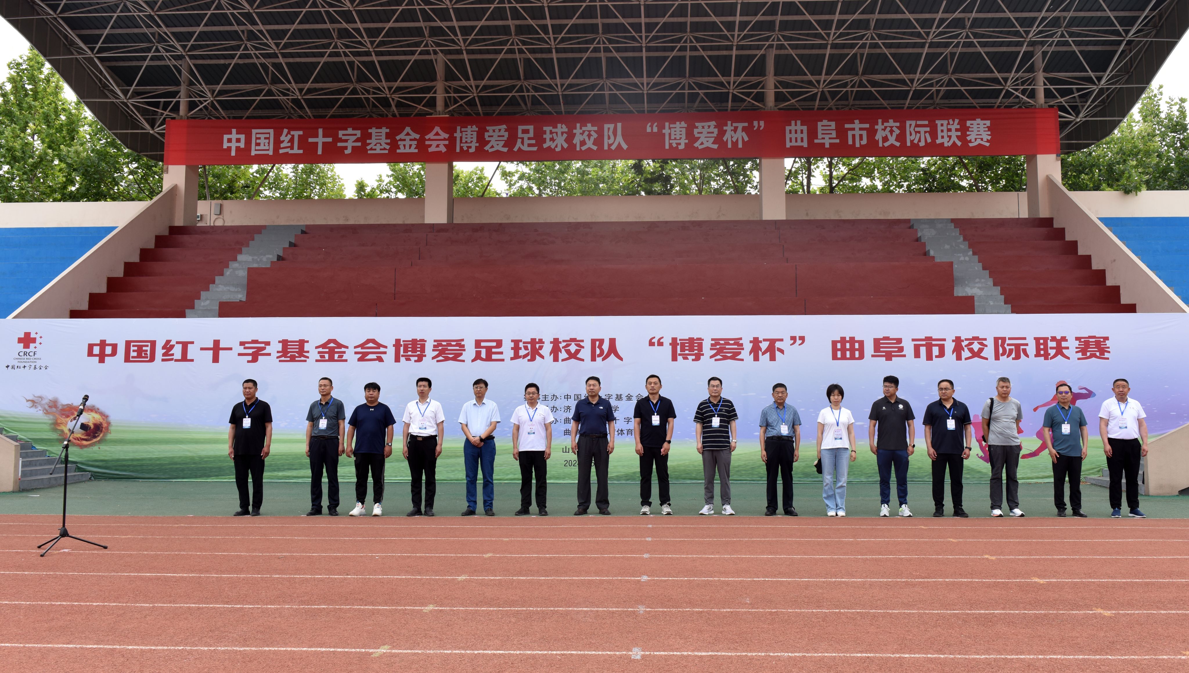 刘亚斌首先对中国红十字基金会、曲阜教育与体育局及曲阜红十字会表达感谢,并表示,为曲阜市农村小学孩子们提供一个展示自我、锻炼意志、交流学习的平台是济宁学院体育学院的职责所在。他表示,本次比赛不仅是对博爱体育校队训练成果的检验,更是展示各校足球风貌、促进交流的良机。付云震在致辞中指出,校园足球运动是提高学生身体素质、培养团队精神和奉献品质的有效方式,他鼓励参赛队员抓住机会,积极训练,提升技战术水平,为曲阜体育事业和校园足球发展创造新成就,增加新亮点!