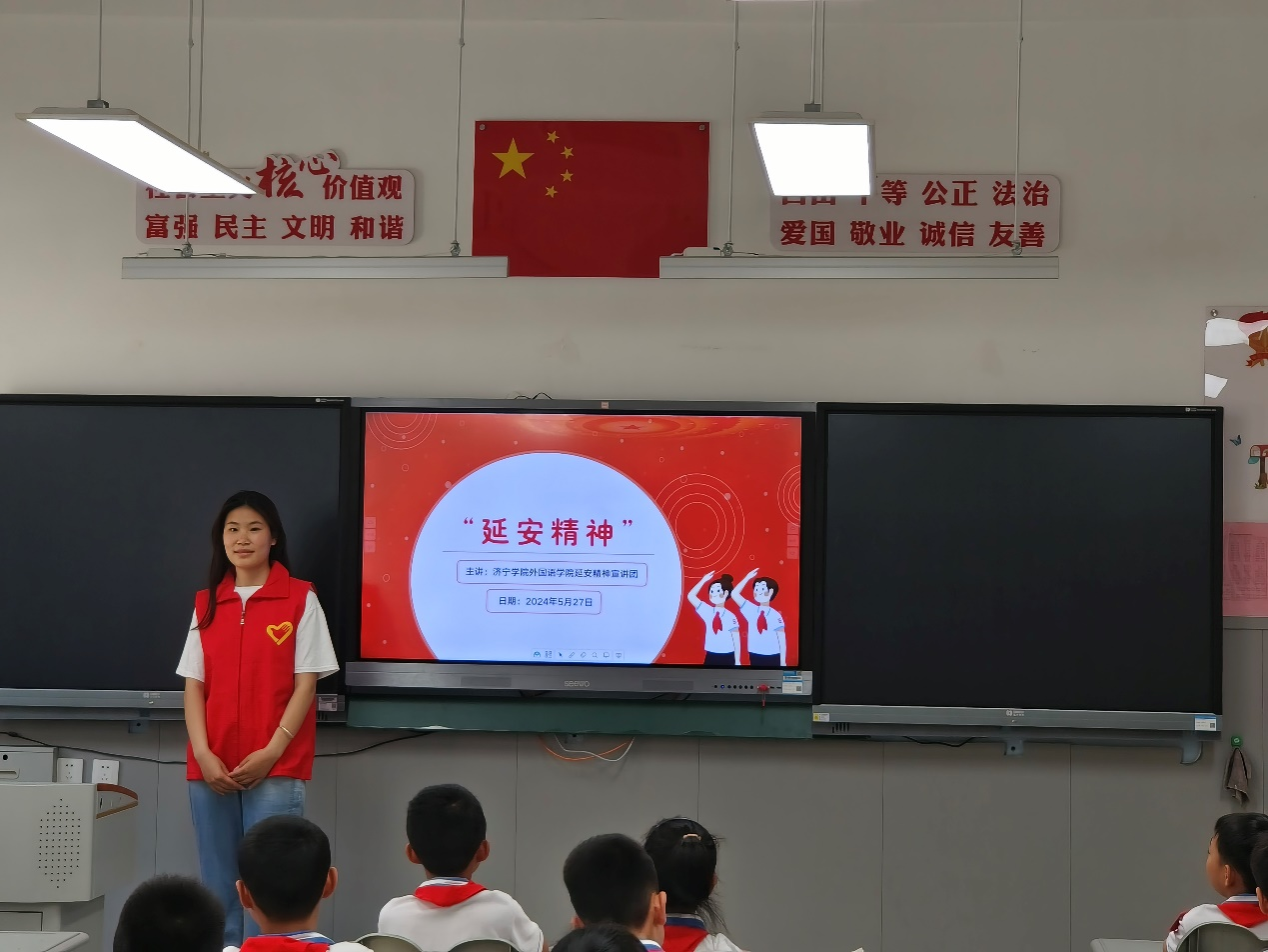 5月27日下午,团中央全国大学生延安精神志愿宣讲团济宁学院外国语学院宣讲团走进济宁学院附属小学,为二年级八班的同学们带来了一场生动而有趣的宣讲活动。