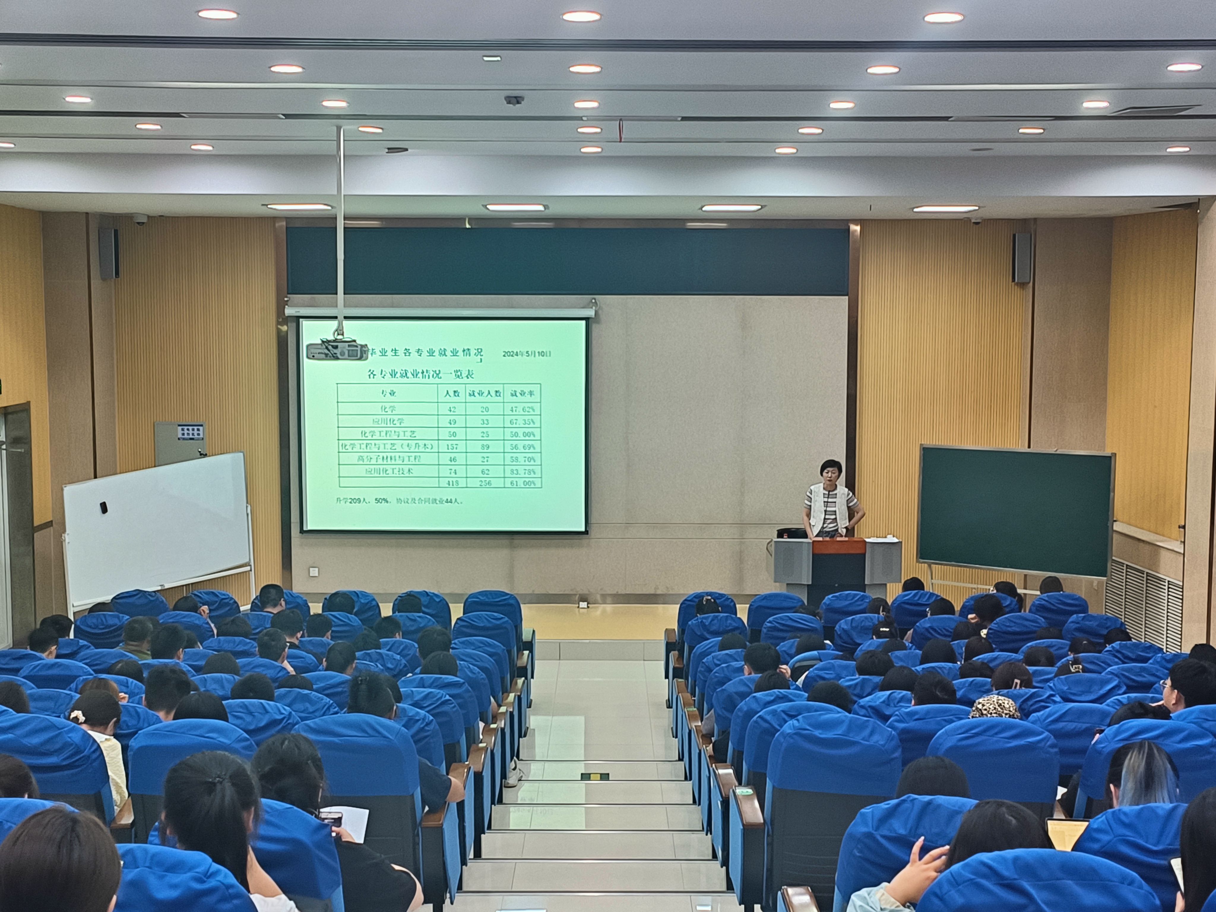 为推进2024届毕业生就业工作,引导毕业生树立正确的就业观念,提高就业积极性和主动性。5月28日晚,化学化工与材料学院在9D101召开2024届毕业生就业再动员大会。院党委书记马新蕾、辅导员马京出席会议,2024届未落实就业去向的全体毕业生参加会议。