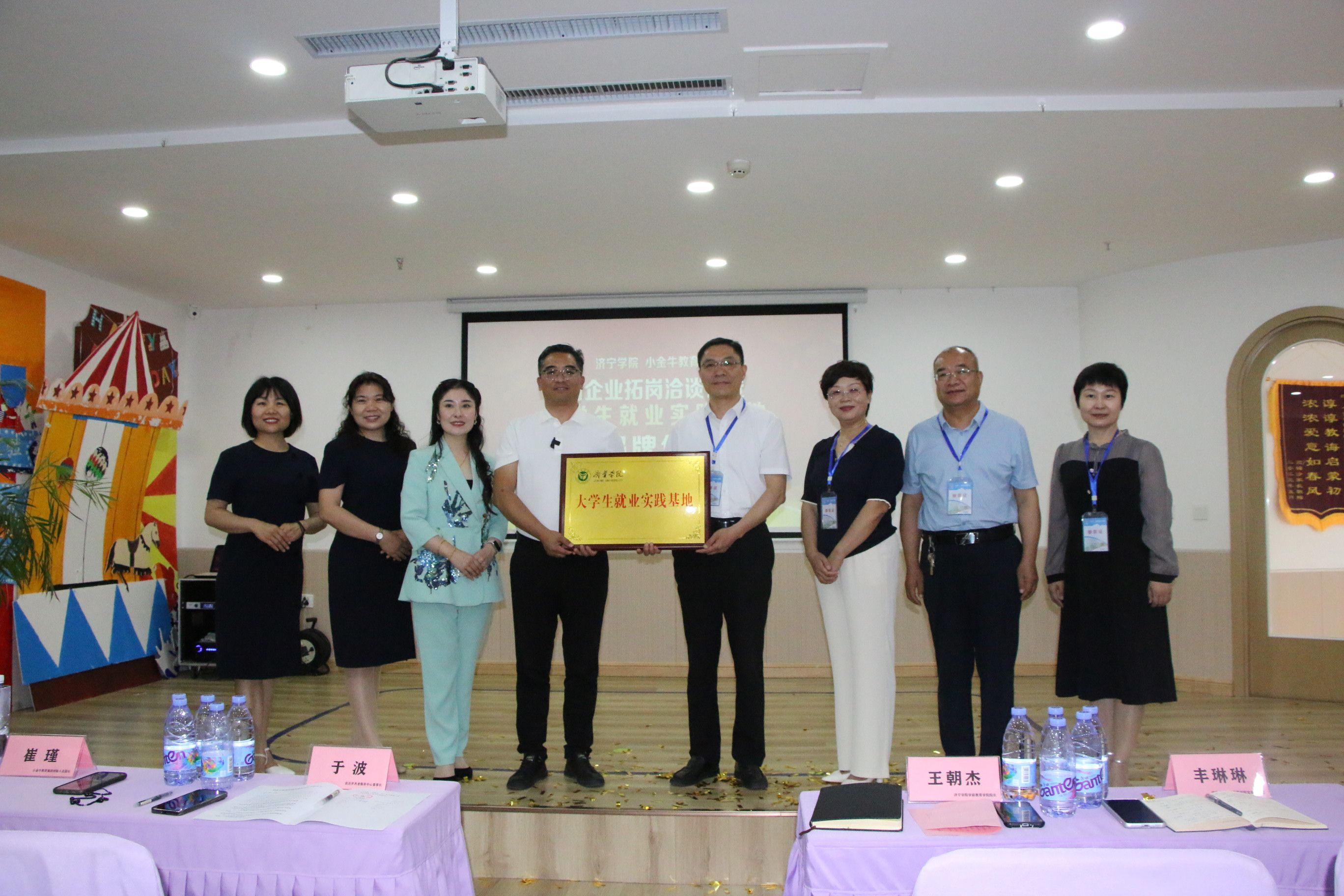 随后,双方进行了热烈而深入的座谈交流。于波向大家全面讲解了小金牛教育集团的发展历程、企业理念、业务范畴和对人才的渴望。王朝杰简要介绍了济宁学院学前教育学院的专业特色、人才培养成果以及学生们的优势与潜力。现场举行了隆重的济宁学院“大学生就业实践基地”揭牌仪式,双方就如何更好地搭建就业桥梁、促进人才供需对接展开了积极探讨。