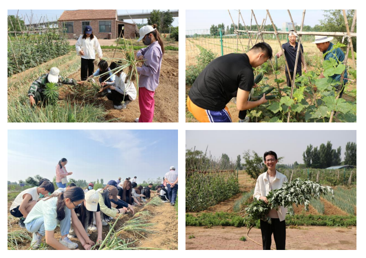 在劳动农场,专业人员向师生介绍了农作物的品种,讲解了黄瓜和大葱的生长周期,并为其示范采摘和种植动作要领。随后,同学们三五成群自发开展了摘种劳动,在汗水和欢笑中感受到了田间劳作的不易和丰收的喜悦。同学们享用劳动成果的同时,相互分享今日的劳动心得与体会,老师也借此机会向同学们传授农耕文化知识。