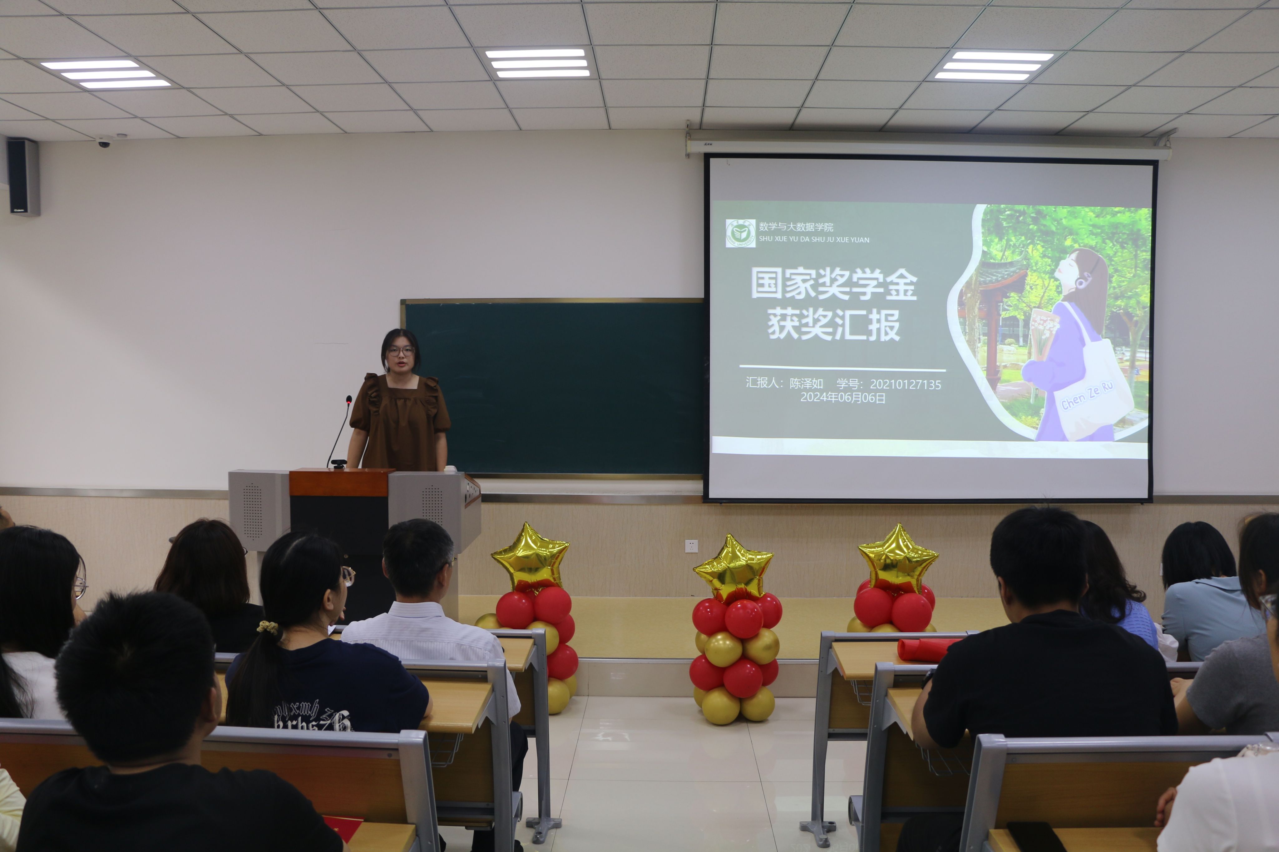 为总结过去一年的学风建设工作,部署下一步学风建设重点任务,动员全院师生凝心聚力推动人才培养更上新台阶,数学与大数据学院积极响应学校号召,于6月6日下午在8号楼B203教室召开学风建设表彰大会。学院党委书记孙文,副院长黄长虹、马小翠、学术副院长申莹,院长助理王江峰,及部分教师代表、辅导员代表出席。来自不同年级的近二百名同学参加。会议由团委副书记陈轶洋主持。