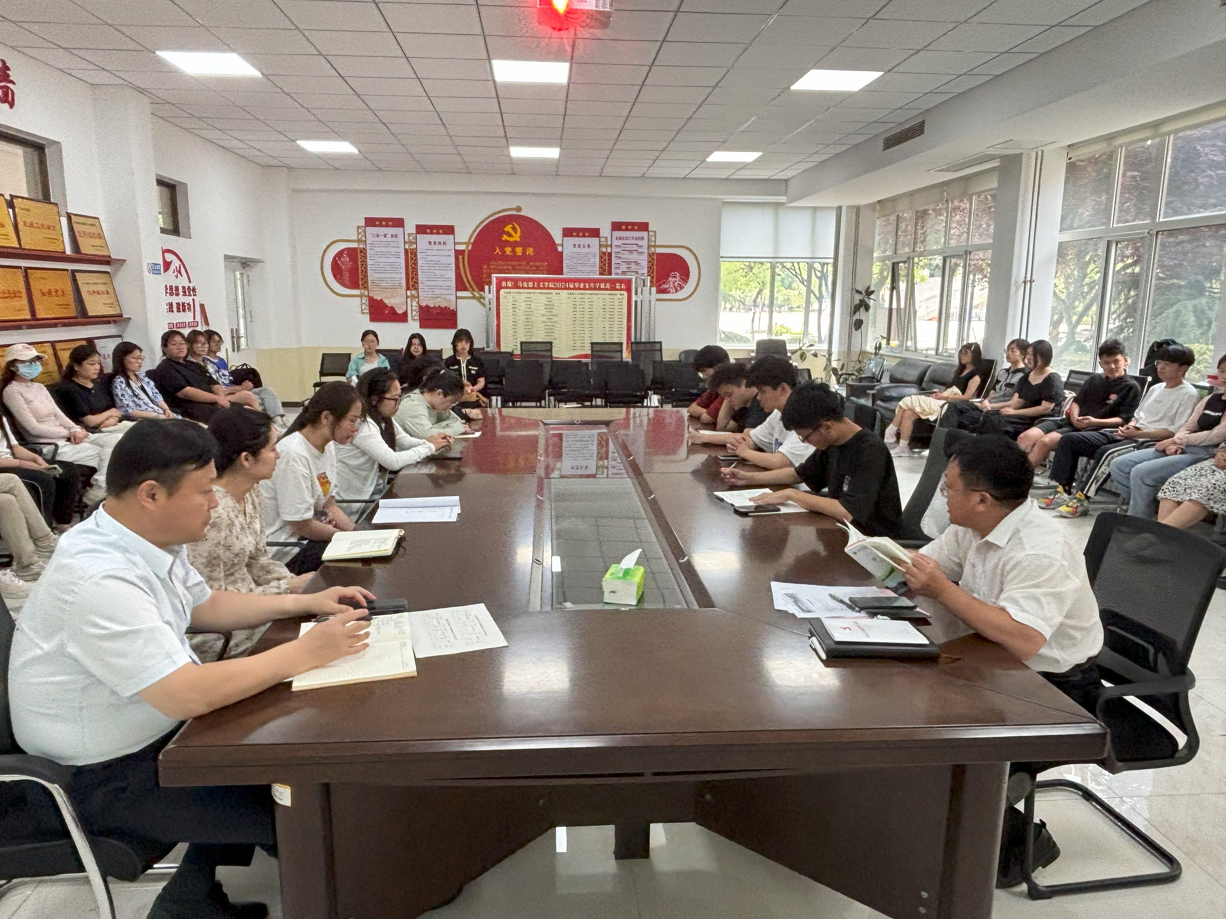 姚海生、付茹雪带领大家学习了习近平总书记关于青年、就业、考察山东的重要讲话精神,研读了《中国共产党纪律处分条例》部分内容,和与会人员一起重温《济宁学院学生手册》中的相关校规校纪。