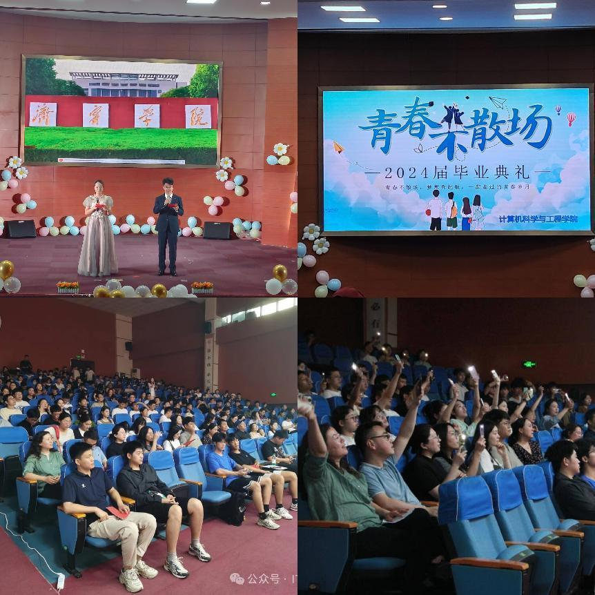 青春不问东西,岁月自成芳华。为祝贺2024届毕业生圆满毕业,珍惜母校培育之情,6月11日晚计算机科学与工程学院在理科楼报告厅隆重举行了主题为“青春不散场”2024届毕业晚会。学院班子成员、辅导员老师们参加晚会,曲阜市陵城镇团委书记苗川受邀出席了本次活动,活动在抖音“IT新青年”进行同步直播。
