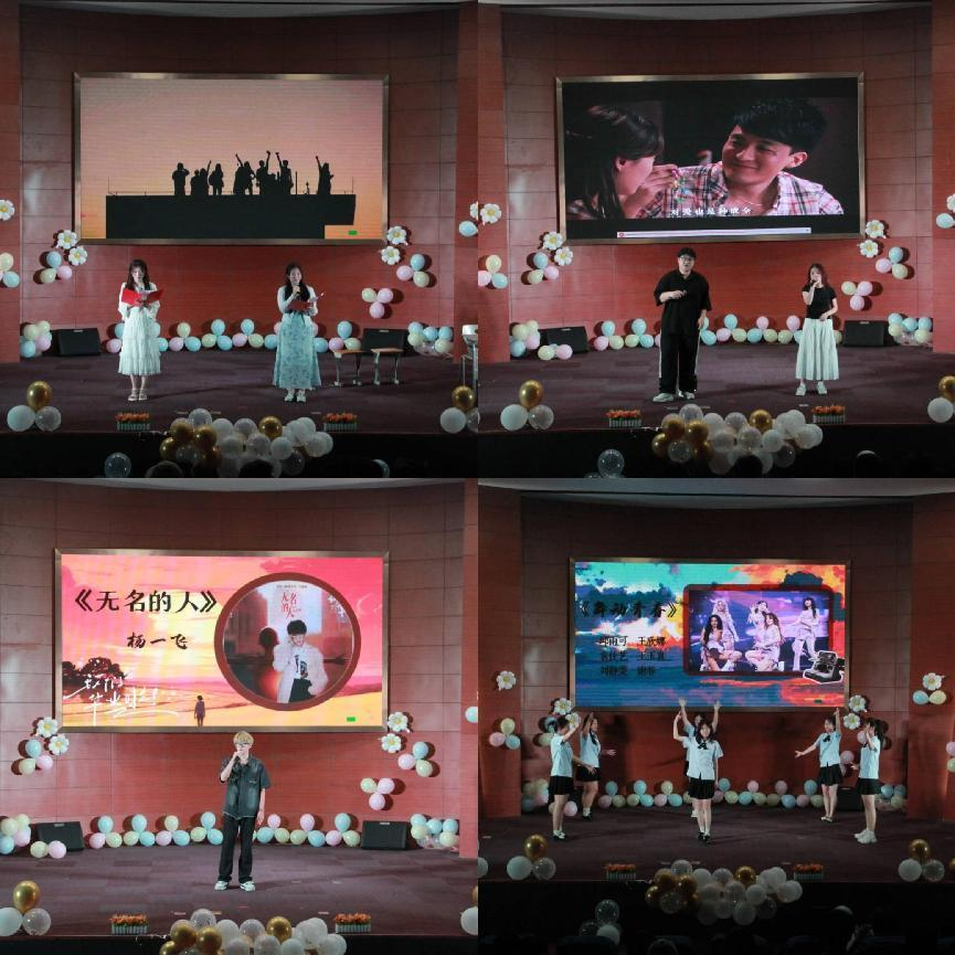 一段精彩的开场视频为晚会拉开序幕,老师们的谆谆教诲、毕业生的离别赠言、学弟学妹们的美好祝福、校园生活的剪影,增添了毕业生的离别情愫。师生们相聚一堂,带着美好的憧憬,一同重温了大学生活的美好。舞蹈《strange things》、《舞动青春》点燃了晚会现场的热情和活力氛围;歌曲《像风一样》、《大鱼》、《我是如此相信》等节目精彩纷呈将同学们带回那段美好的青春岁月;诗朗诵《青葱岁月》勾起了同学们对大学时光的深深怀念;一首师生合唱《如愿》表达了毕业生对学校和学院的美好祝愿;晚会最后在全体合唱歌曲《夜空中最亮的星》中落下帷幕。