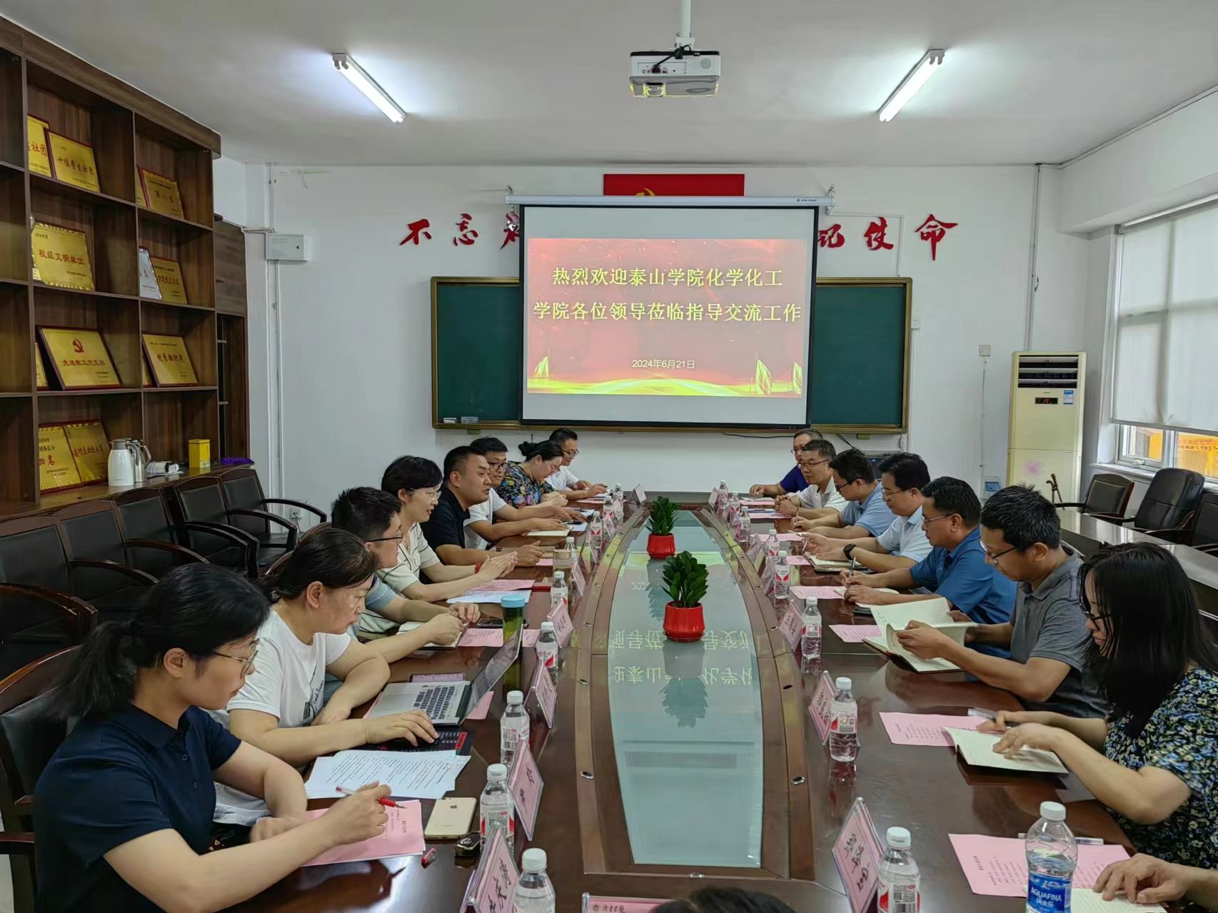 6月21日下午,泰山学院化学化工学院党委书记姜焕伟,党委副书记、院长韩银锋等一行9人来访济宁学院化学化工与材料学院,学习交流师范专业认证、学科建设、实验室建设和学生管理等事宜。化学化工与材料学院党委书记马新蕾,院长刘涛以及师范专业认证小组成员参加了本次交流活动。