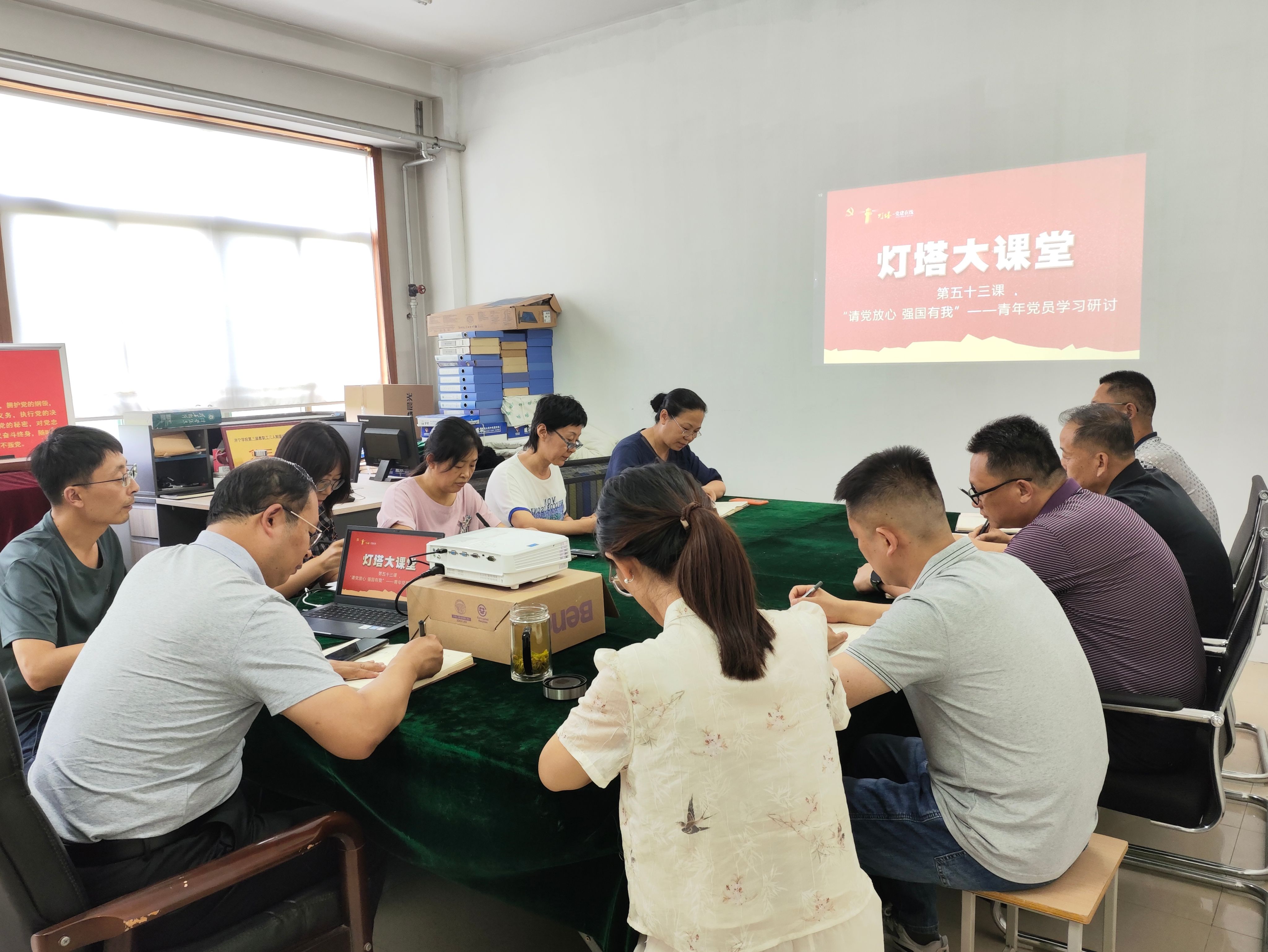 最后,支部全体党员集体观看“灯塔大课堂”第五十三课《“请党放心 强国有我”——青年党员学习研讨》。