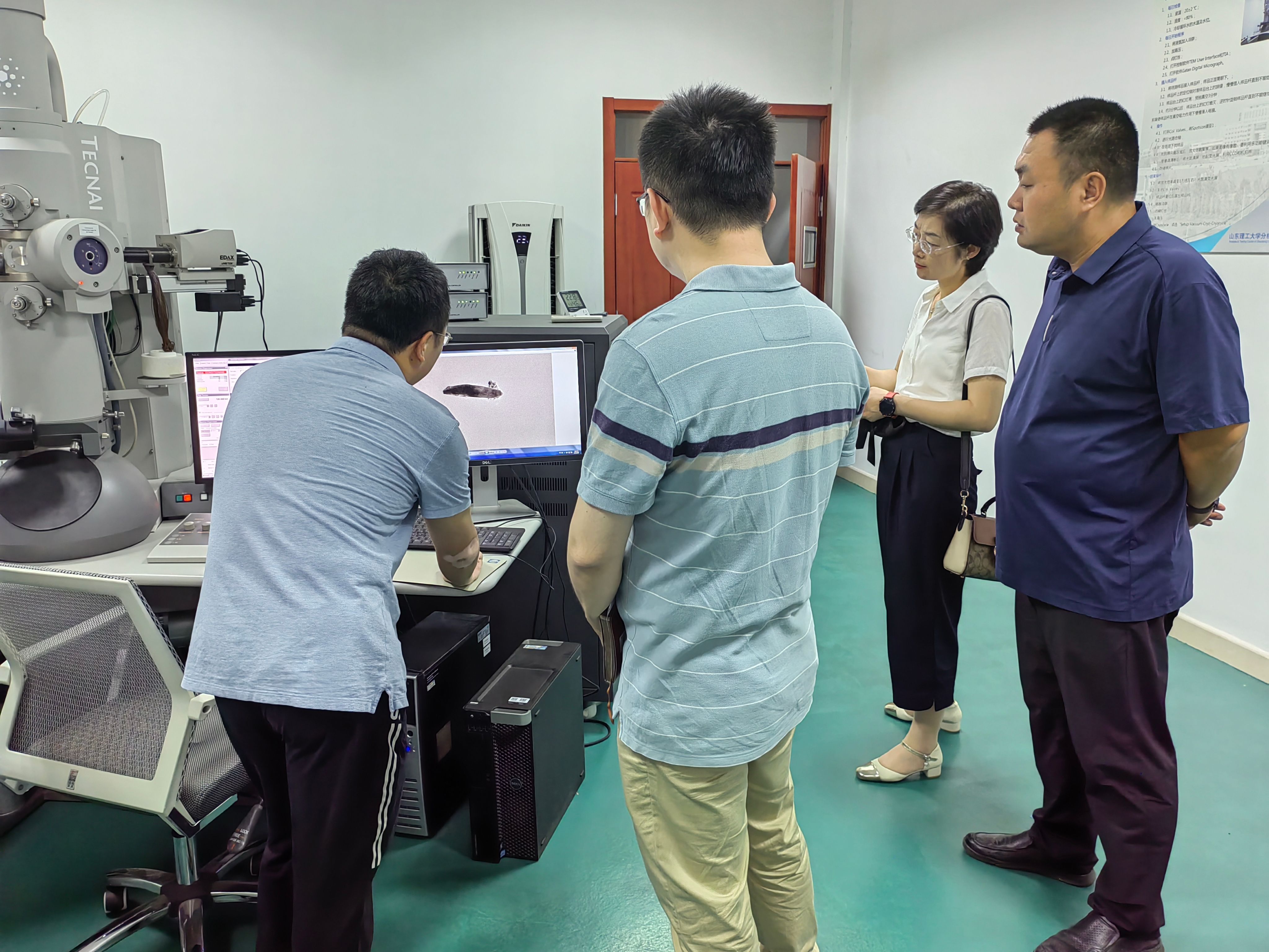 6月25日下午,化学化工与材料学院党委书记马新蕾、院长刘涛、学术副院长郑逸群和袁宽瑜赴山东理工大学化学化工学院和学校分析测试中心交流调研。山东理工大学化学化工学院院长杨乃涛、学校分析测试中心主任张明伟等热情接待了马新蕾一行。