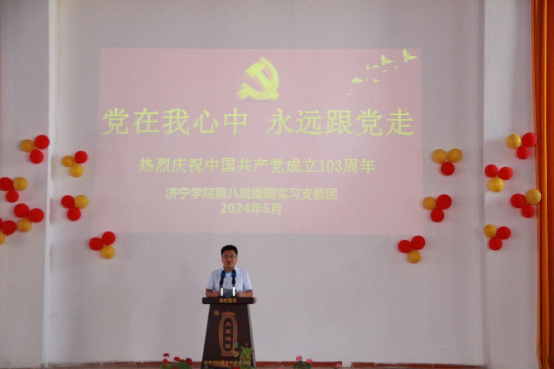 此次“党在我心中永远跟党走”庆祝党的103周年生日活动,是我校师生在思想政治意识、人文专业素养、党史党情学识等方面的良好展现,也体现出与支教学校师生融为一体的深情厚谊。济宁学院支教团与支教学校师生共同为建党103周年献上了一台别开生面的思想文化盛宴。支教团将继续弘扬光荣传统、赓续红色血脉,进一步坚定理想信念,以伟大建党精神为指引,为办好人民满意的教育教学事业做出贡献。