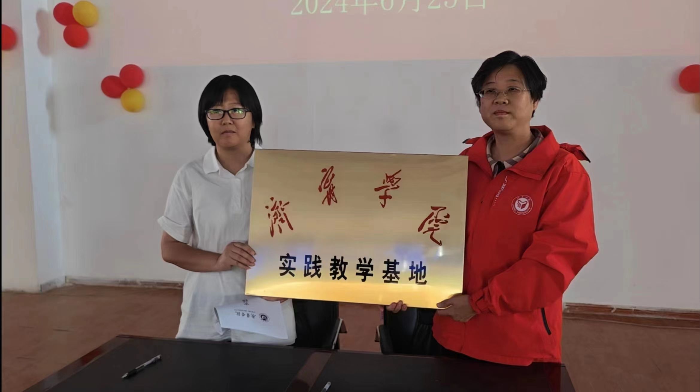 支教团团长葛艳丽代表济宁学院,与英吉沙县杏坛中学、英吉沙县育才中学、英吉沙县鲁英中学、英吉沙县第五小学共建济宁学院实践教学基地签约、授牌。