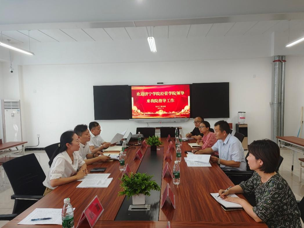 济宁市技师学院信息工程学院党支部副书记杨兆柱及相关教学负责人、专业带头人介绍了学校和电子商务专业的具体情况。双方深入探讨了“3+4”对口贯通教育专业人才培养方案和课程体系的建设方案,为进一步的合作培养交流了意见。双方一致同意发挥各自专长,综合运用多方资源,进行深度合作,探索形成高度贯通的人才培养体系。