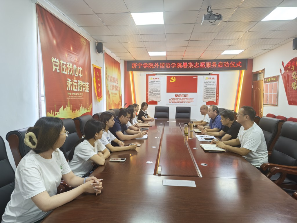 7月9日上午,外国语学院乡村振兴志愿服务活动启动仪式在梁山县黑虎庙镇于楼村党群服务中心举行,济宁学院驻村第一书记孔全新、陈晔、孙启忠、赵国丽,外国语学院辅导员张磊,志愿队成员参加,活动由张磊主持。