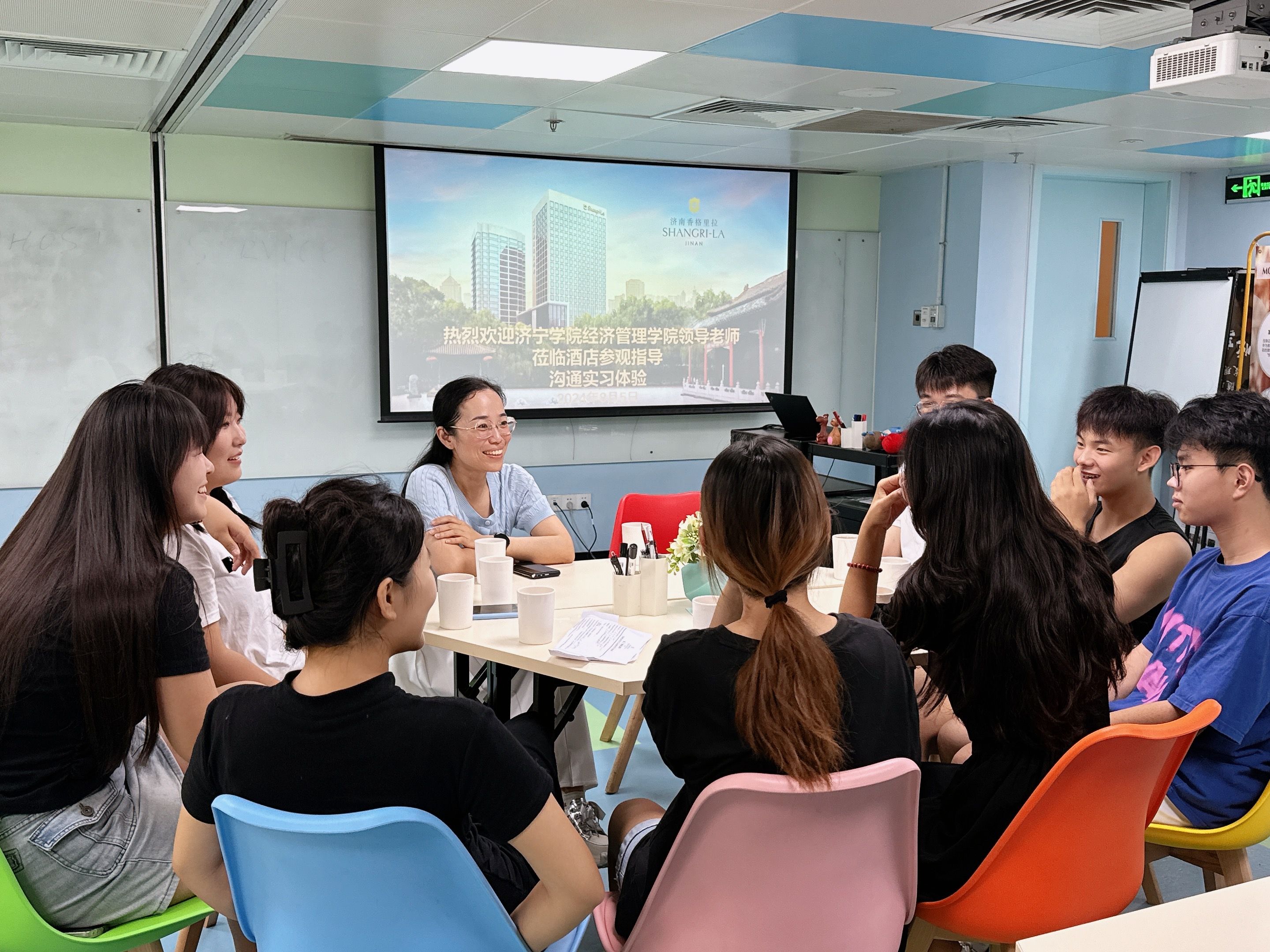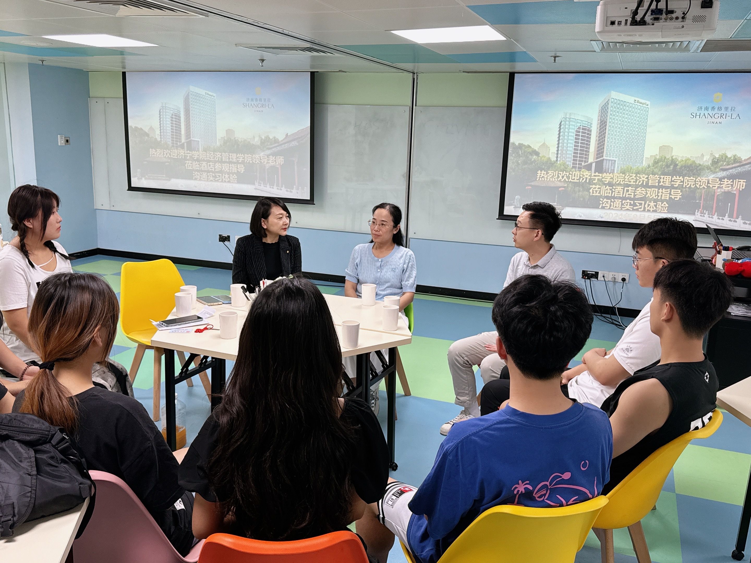 为深入了解学生在实习期间的思想、学习、生活与工作情况,推进实习+就业工作,8月5日下午经济管理学院院长霍雨慧带领旅游管理专业教研室主任赵月阳赴济南香格里拉大酒店亲切看望实习学生,并与企业领导座谈交流。