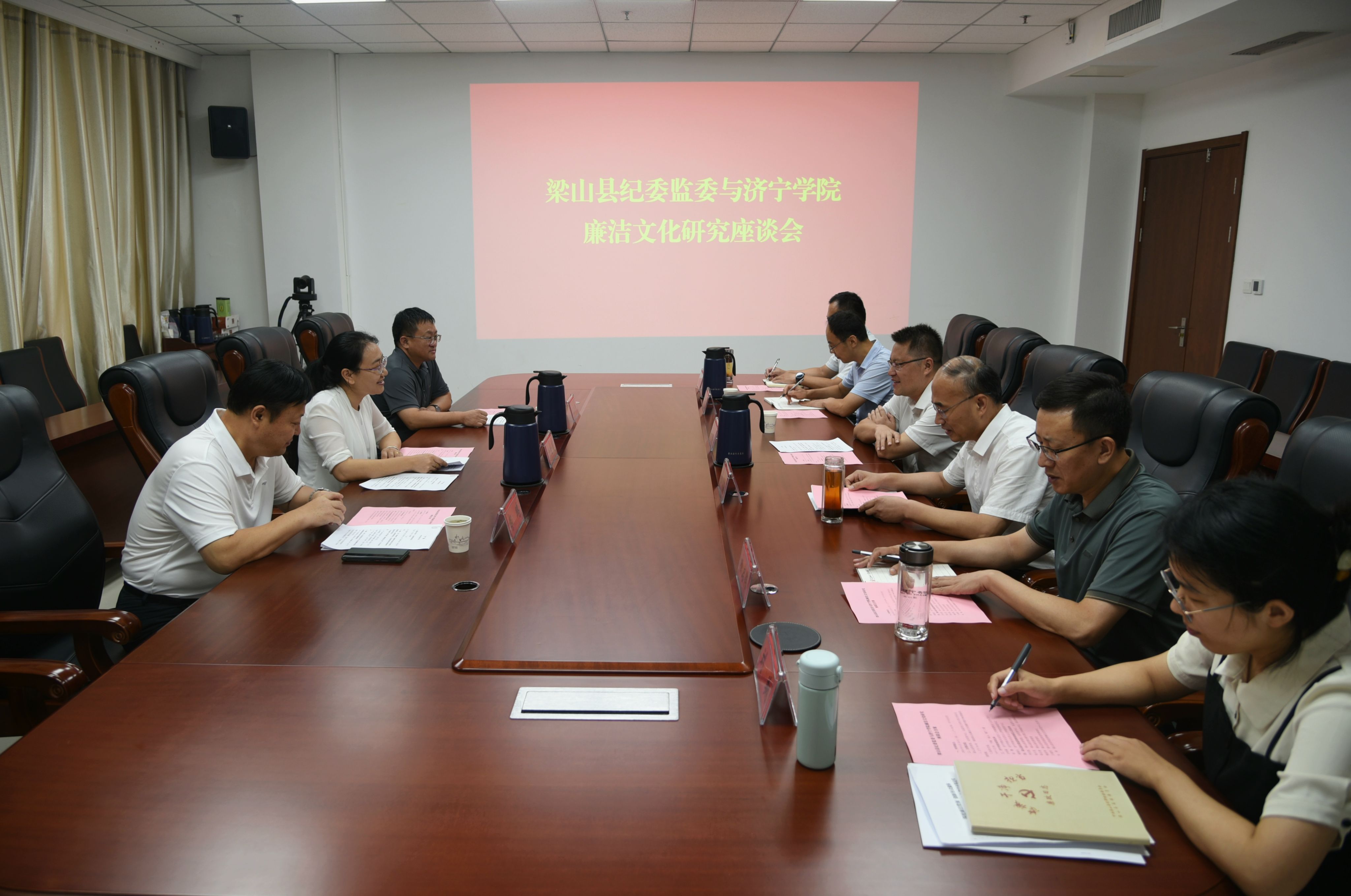 8月20日上午,马克思主义学院副院长沙世蕤一行三人赴梁山县纪委监委就推进廉洁文化研究进行交流座谈。梁山县委常委、纪委书记、监委主任李文凯等相关领导参加座谈。