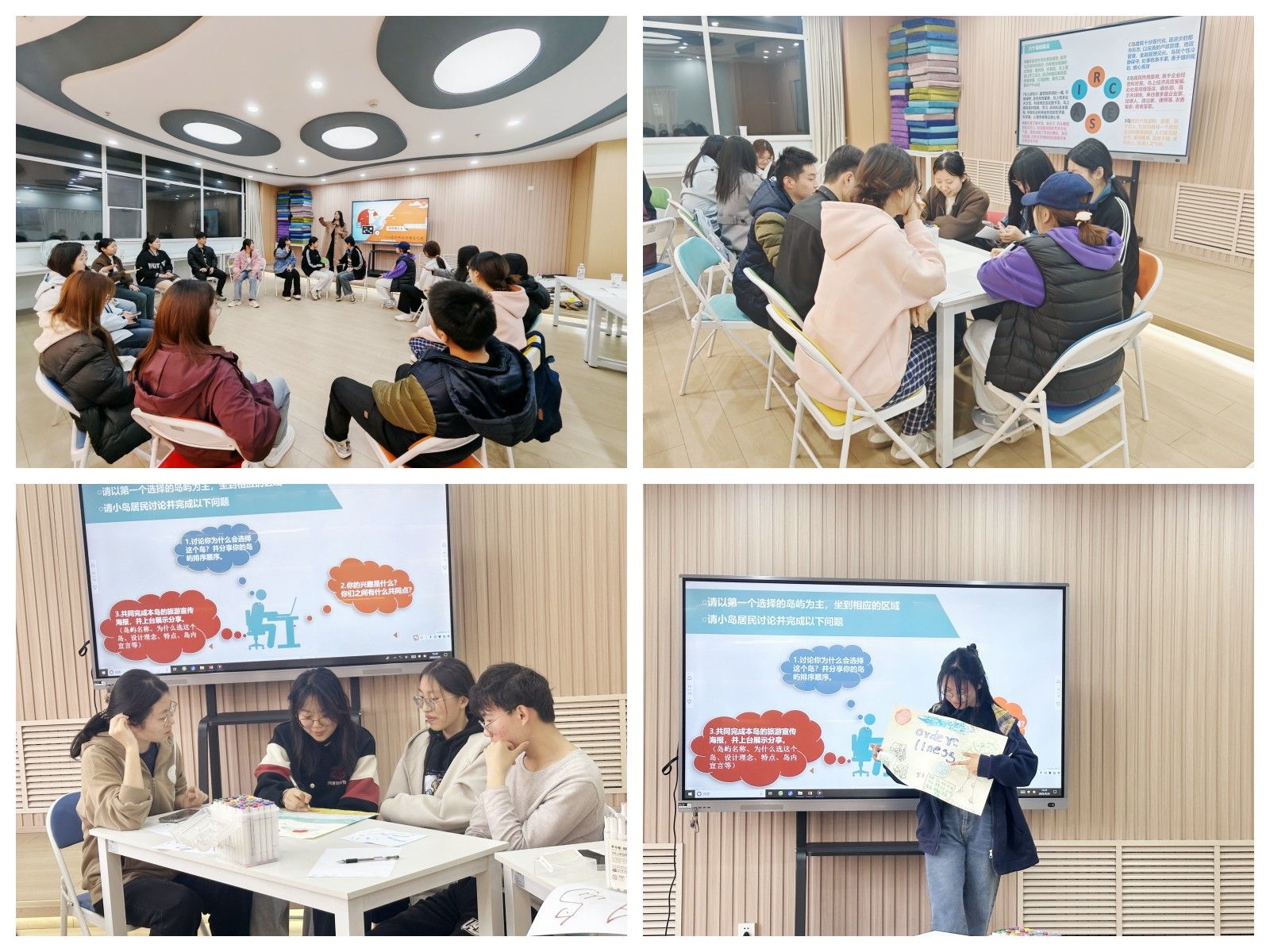 本次活动由三个环节构成。破冰环节借助互动游戏“桃花朵朵开”营造活跃氛围,助力同学们快速熟络,在轻松环境中拉近距离。“环游兴趣岛”环节以绘画艺术为载体,引导学生通过创作探索职业兴趣倾向,深刻理解兴趣在职业选择中的关键作用。“我的职业兴趣”环节则系统解读霍兰德职业兴趣理论,帮助学生科学识别自身职业兴趣类型,深入剖析兴趣对应的职业特征,从而精准定位个人职业兴趣方向。