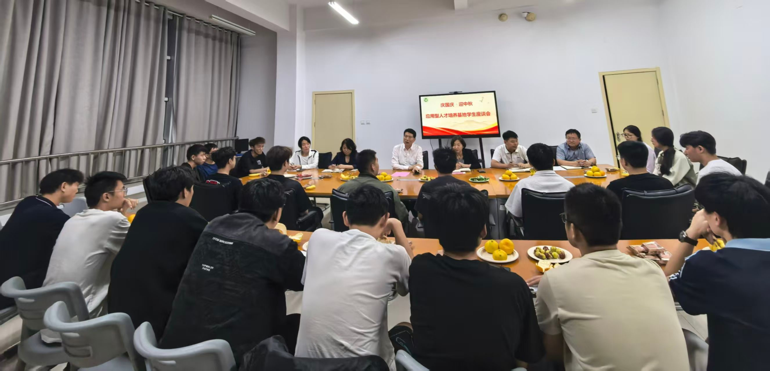 9月30日晚,应用型人才培养基地举行国庆中秋“双节”座谈会。学校党委委员、统战部部长张永强参加,与20多名师生代表齐聚一堂,畅所欲言。座谈会由基地副主任李爱兰主持。