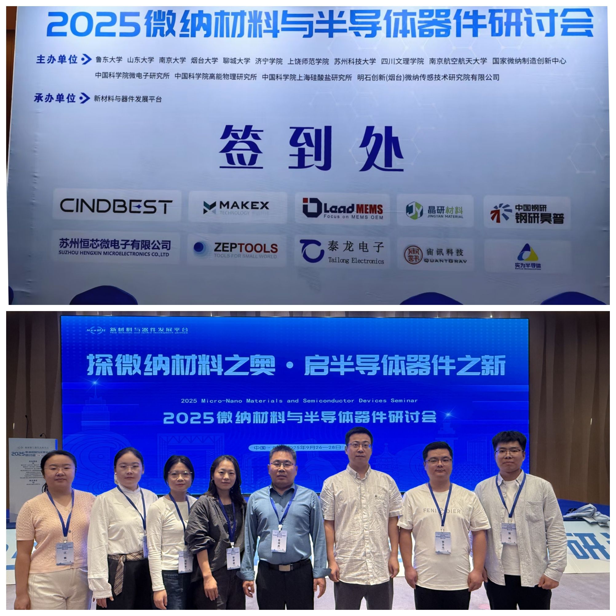 9月26日至28日,由我校和鲁东大学、山东大学、南京大学、烟台大学、聊城大学等多所高校和企业共同主办的“2025微纳材料与半导体器件研讨会”在烟台市金沙滩英迪格酒店顺利举行。物理与电子工程学院院长岳现房、院长助理孟炎等8位教师参加了会议。
