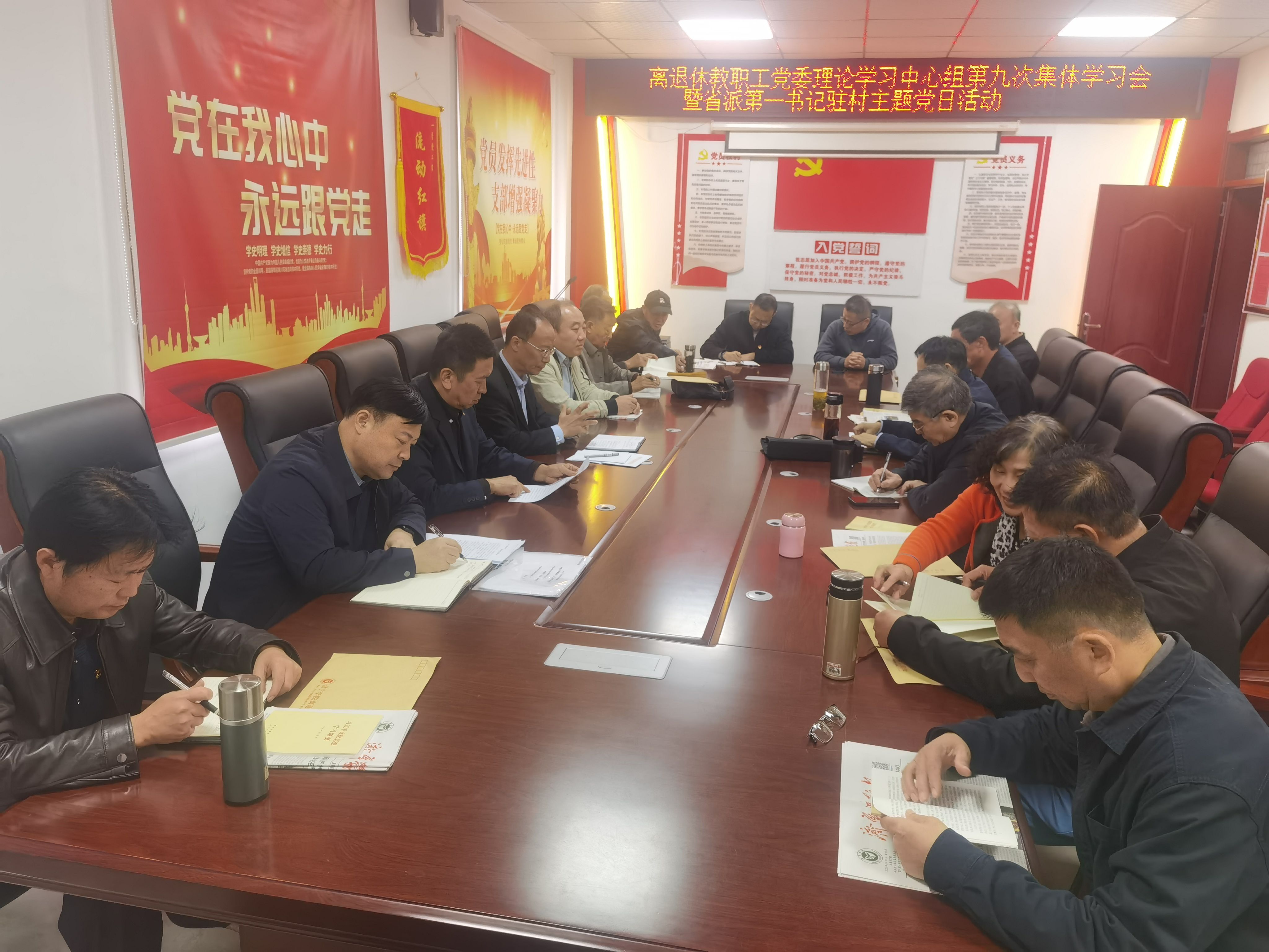 随后离退休党委在“第一书记”帮包村梁山县黑虎庙镇于楼村委会议室召开第9次理论中心组学习会(扩大)。集体学习习近平总书记关于党的纪律建设的重要论述、关于师德师风的重要论述摘编、“以人民心为心”等重要论述和文章,宣读了学校纪委关于对违纪党员的处理通报,听取了省派“第一书记”、离退休工作处副处长孔全新帮包工作情况和“法治小院”建设情况介绍。离退休党委书记、工作处处长郭克功主持会议并作总结发言。他指出,严明的纪律是党的事业不断取得胜利的根本保证,加强纪律建设是党推进自我革命的必然要求,更是全面从严治党的必然选择。离退休处全体在职党员和广大离退休党员要绷紧纪法之弦,强化纪法意识,严守各项纪律,始终做到自警自醒、慎独慎微,在各项工作和日常生活中展现好形象、好作风,在推动高质量发展中展现新担当、新作为。