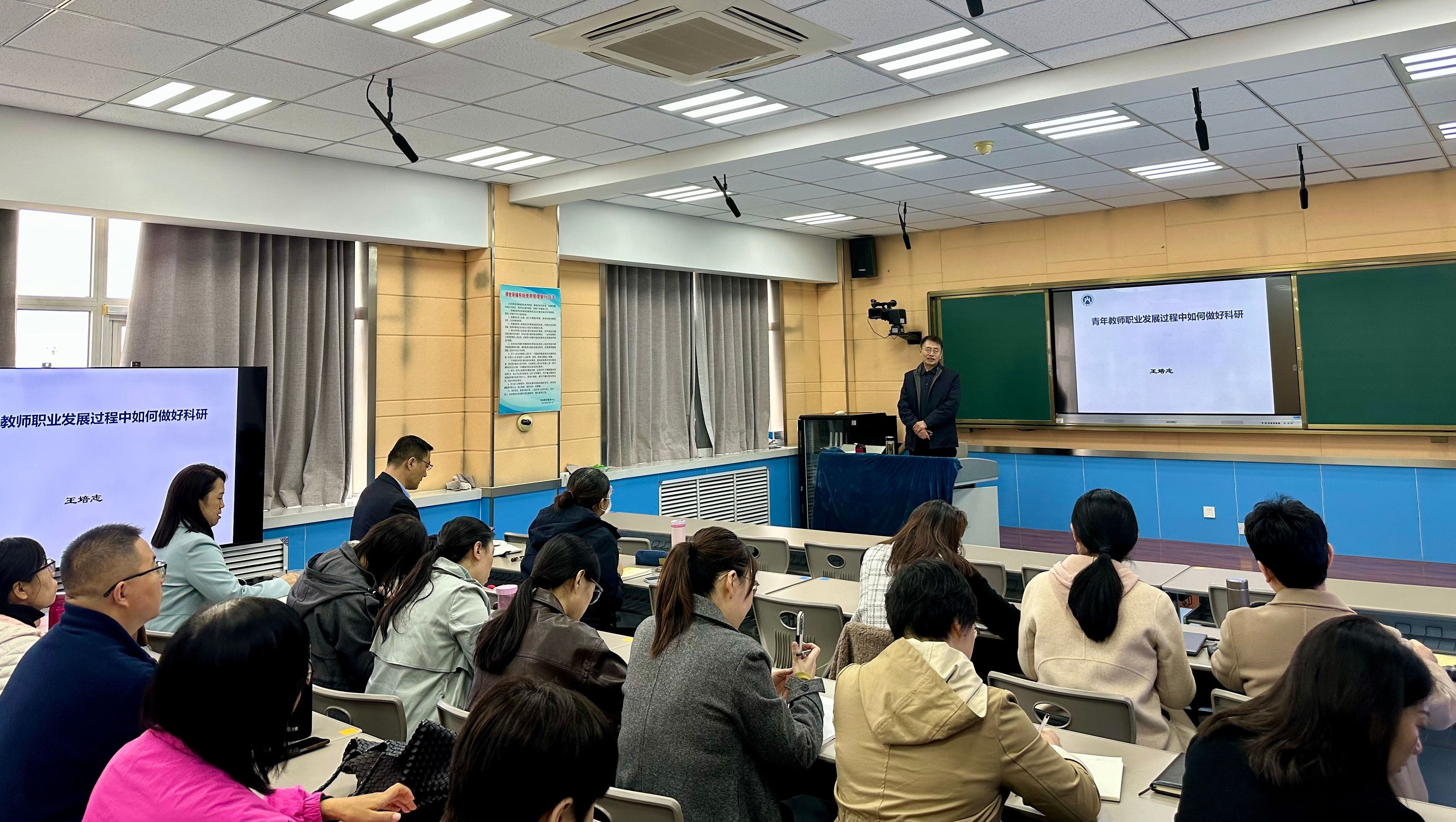 报告中,王培志围绕 “科研发展路径”、“成长过程需注意的问题”、“科研成果形成过程”、“研究获取学术信息的途径”以及“国家‘两金’项目课题的申报” 五大核心板块,结合高校教师 “科学研究、培养人才、社会服务” 三项国家赋予的核心任务,展开了深入且系统的分享。他着重剖析高校教师职业竞争力,提出 “宽口径有方向,厚基础有核心” 发展理念。教好课需扎实专业基础、掌握理论实务;做好科研要严守学术规范,在计量分析、外语能力上严要求;服务社会要紧跟国家战略与地方政策,结合专业知识与社会需求,实现 “文章写在大地上” 的前瞻性服务。