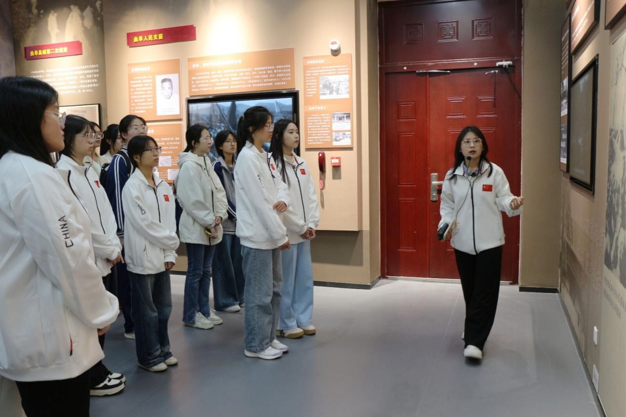 活动伊始,学生讲解员霍福星带领参加活动的学生有序参观并开展讲解。她以生动的语言和鲜活的案例,从抗日战争时期的珍贵文物到解放战争时期的历史照片,系统讲解了曲阜地区革命先辈们为民族独立和人民解放作出的卓越贡献。这种沉浸式体验让学生们深刻感悟到革命历程的艰辛。