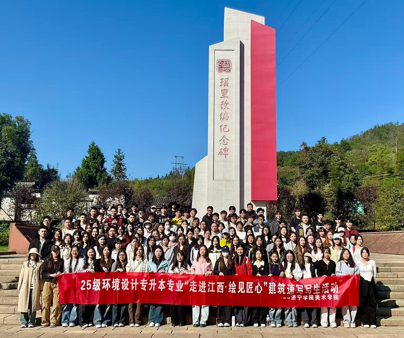 为深入学习践行党的二十届四中全会精神,推动艺术教育与思政党建深度融合,10月23日以来,美术学院师生赴江西省景德镇市、上饶市开展“流动的红旗”主题实践活动。本次活动由任课教师司继琳、鲁永、张大羽及辅导员王姝彤带领,2025级环境设计(专升本)专业100余名学生参加。