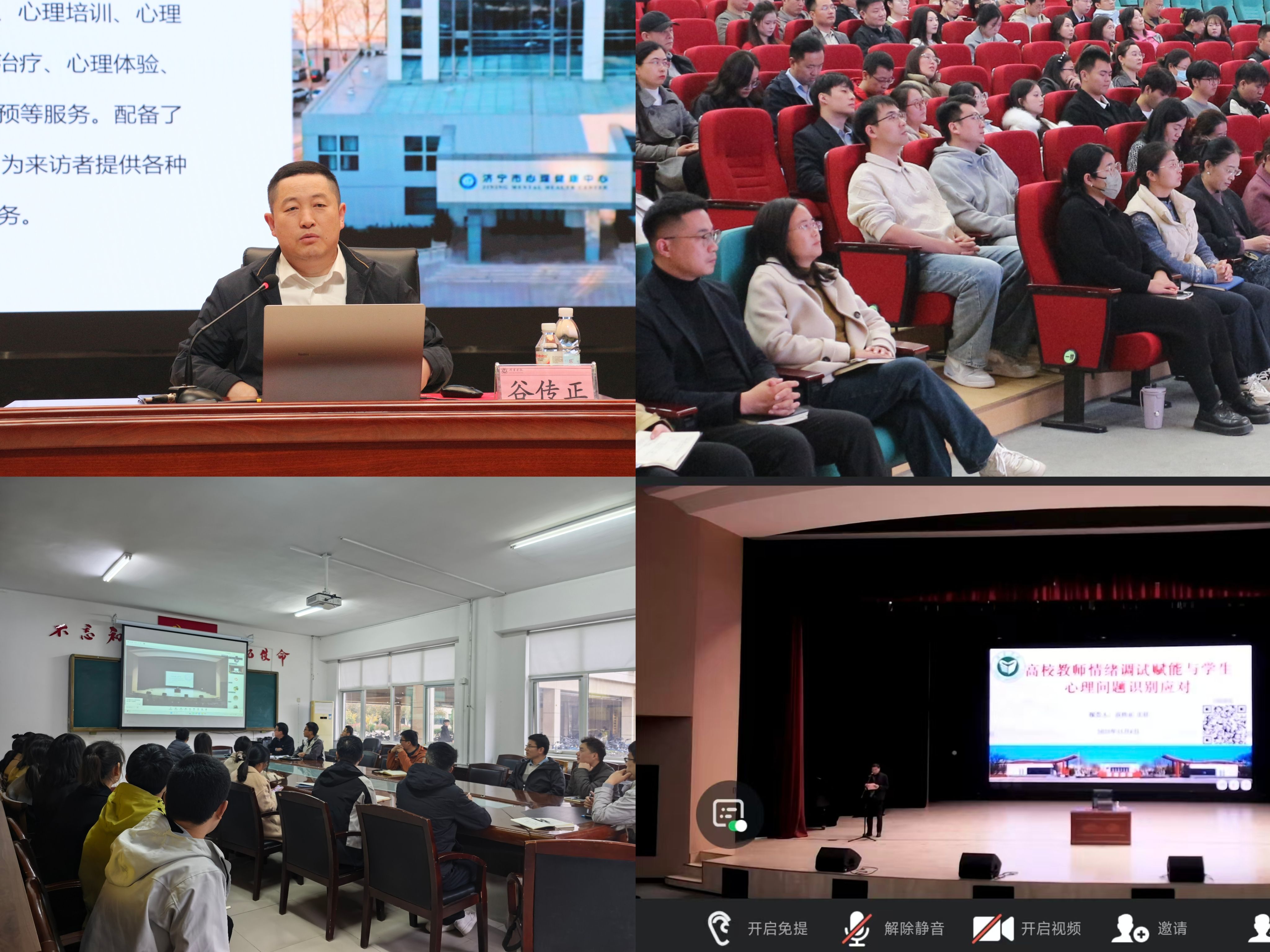 报告特邀山东省戴庄医院临床心理科主任医师谷传正担任主讲。谷传正以“高校教师情绪调试赋能与学生心理问题识别应对”为主题,结合丰富典型案例,深入浅出地讲解了教师情绪管理、压力疏导及人际关系优化等自我赋能技巧,引导广大教职工积极关注并主动维护自身心理健康。同时,报告系统阐述了学生常见心理问题的表现特征、识别方法以及稳定化应对策略,为一线育人工作者提供了科学、实用的指导路径。