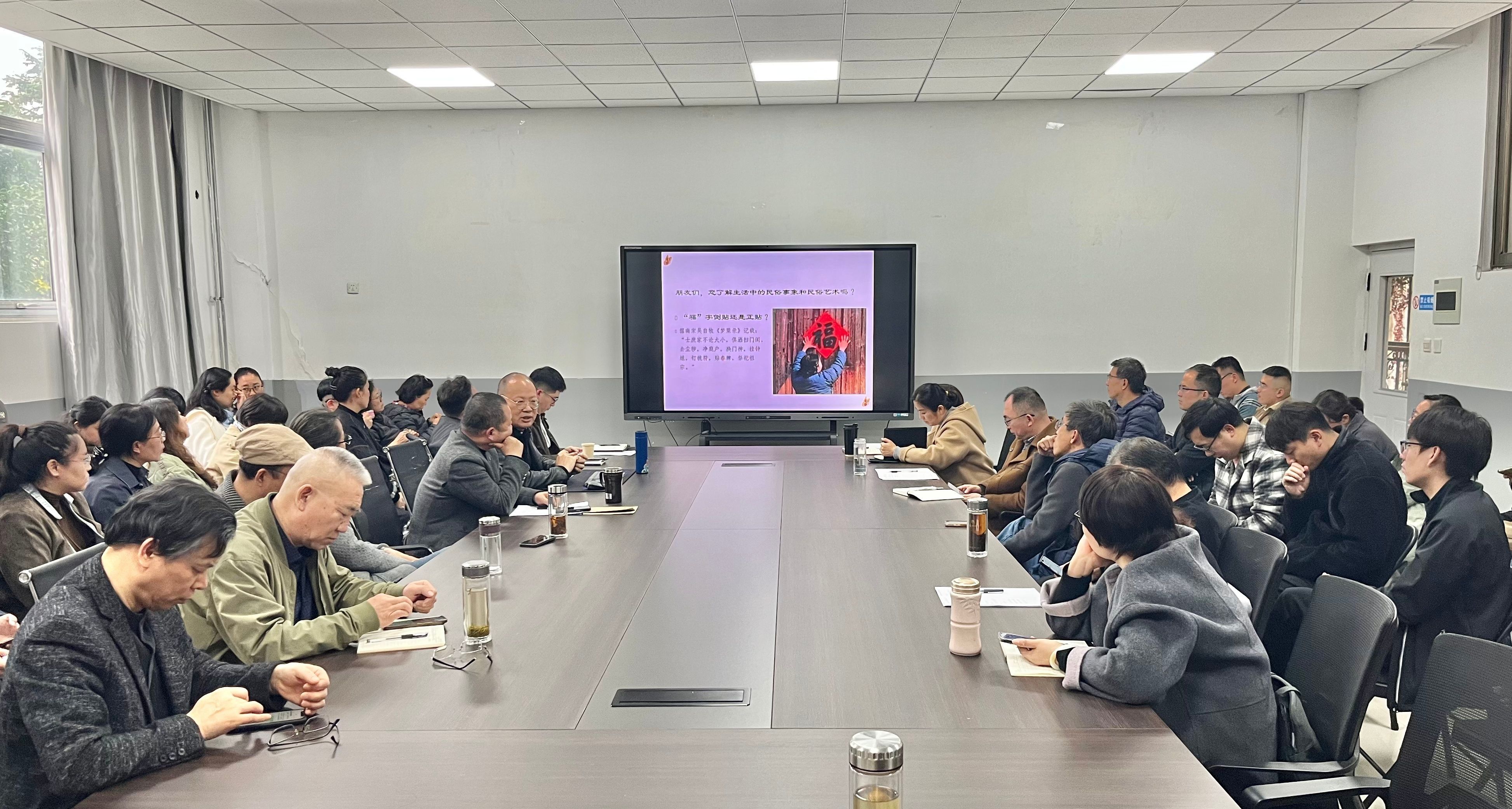 讲座中,韩波通过“福”字贴法、筷子文化、端午节习俗等生动案例,系统阐释了民俗艺术的概念体系与研究框架。他深入剖析了民俗艺术的传承性、传统性、风俗性与群体性特征,明确了民俗艺术学的研究对象涵盖内外部规律、专题研究、遗产保护与实践应用等多个维度。在理论阐释基础上,韩波还以“牛郎织女”“白蛇传”等经典故事的演变为例,展现了跨学科研究方法在民俗艺术研究中的重要价值,强调田野调查与实证研究对理解民俗艺术本质的关键作用,为在座教师提供了一套完整而深入的民俗艺术研究方法论体系。