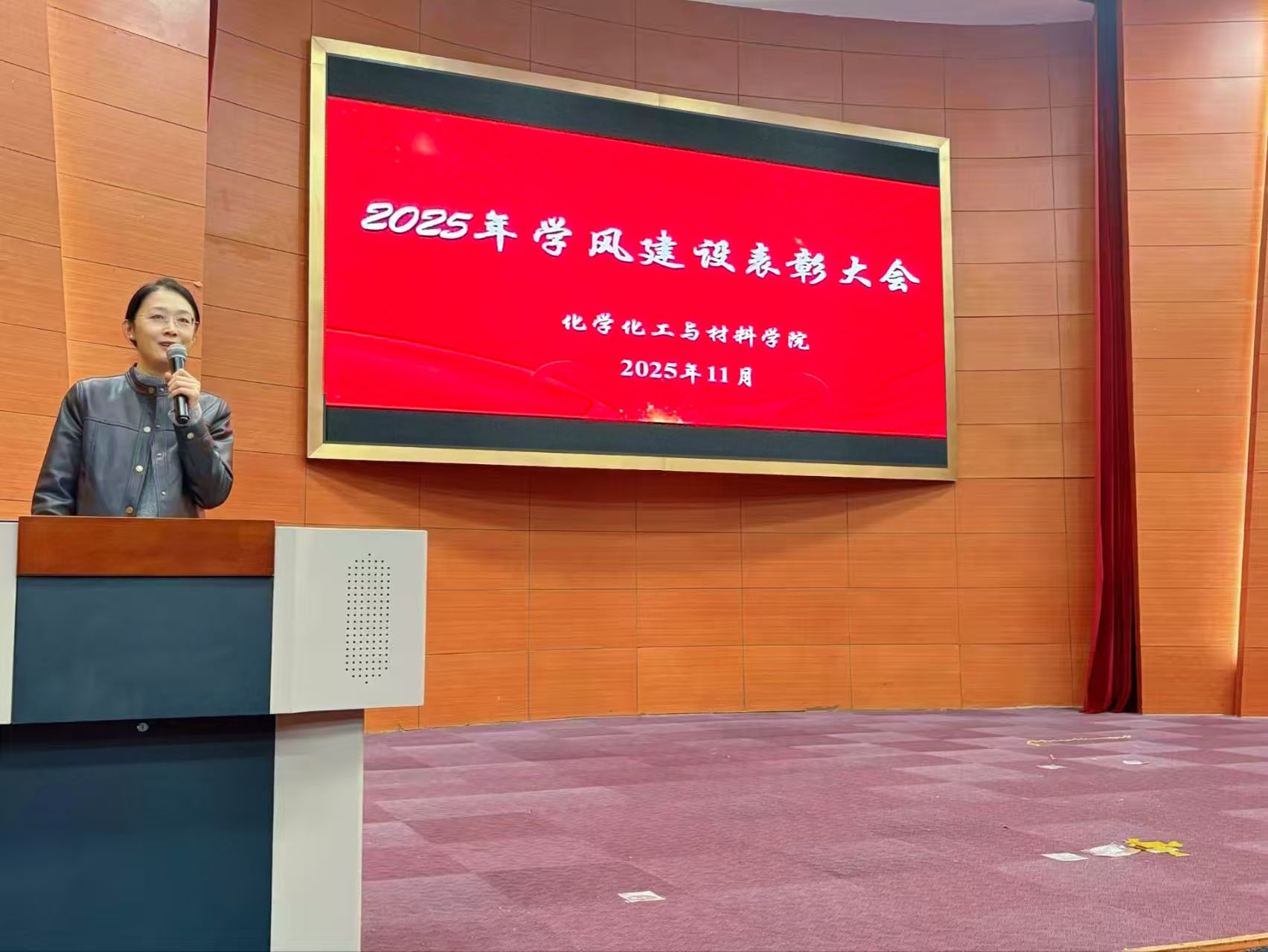 11月13日晚,化学化工与材料学院在理科楼报告厅隆重召开2024-2025学年学风建设表彰大会。大会以“表彰先进树榜样,凝心聚力建学风”为主题,旨在总结学风建设成效、表彰优秀典型,进一步激发全体师生共建一流学风的积极性与主动性。学院党委书记马新蕾、副院长张海峰、团委书记李文婷及2025级全体班主任、辅导员老师出席大会。受表彰的集体和个人,25级全体学生参会。
