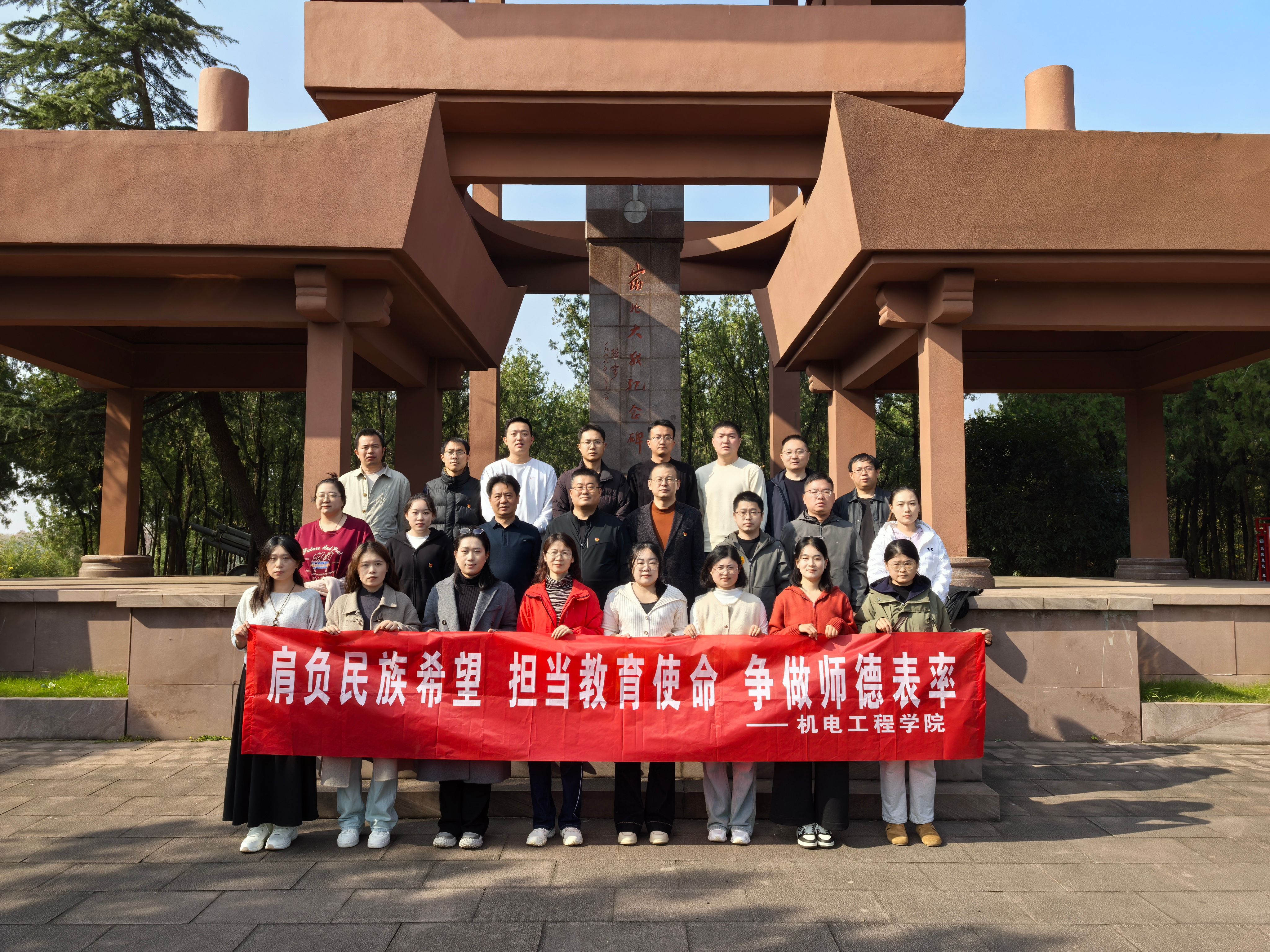 为深入学习贯彻习近平新时代中国特色社会主义思想,贯彻落实党的二十届四中全会精神,进一步提升教工党员党性修养,加强教师队伍师德师风建设,11月15日至16日,机电工程学院组织教工党员和教师代表赴江苏徐州,通过红色基地实践、革命精神学习等方式,开展了“传承红色基因,强化使命担当”党性教育与师德师风建设实践活动。