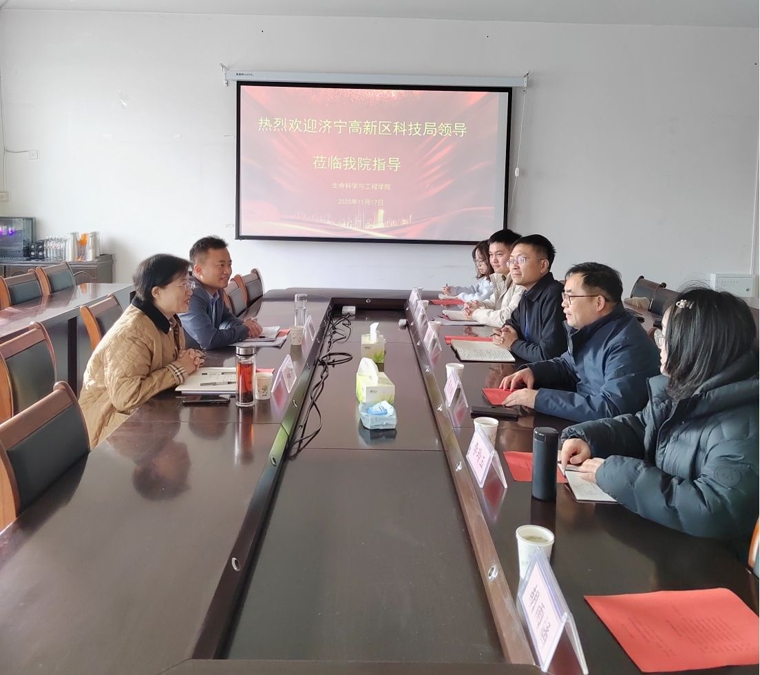 司崇殿对济宁市高新区科技局一行的到来表示热烈欢迎,并介绍了我校在校地合作、产教融合方面的积极探索与显著成效。赵强详细介绍了学院目前的学科专业设置、未来专业申报、办学特色以及学生就业实习等相关的基本情况,他表示希望借此参会的契机进一步夯实合成生物学的学科基础。姚凌燕对我校在科技创新与人才培养方面的成果给予高度评价,并强调此次交流旨在加强政校企三方联动,探索更多合作机会,共同推动科技成果转化与地方产业升级。