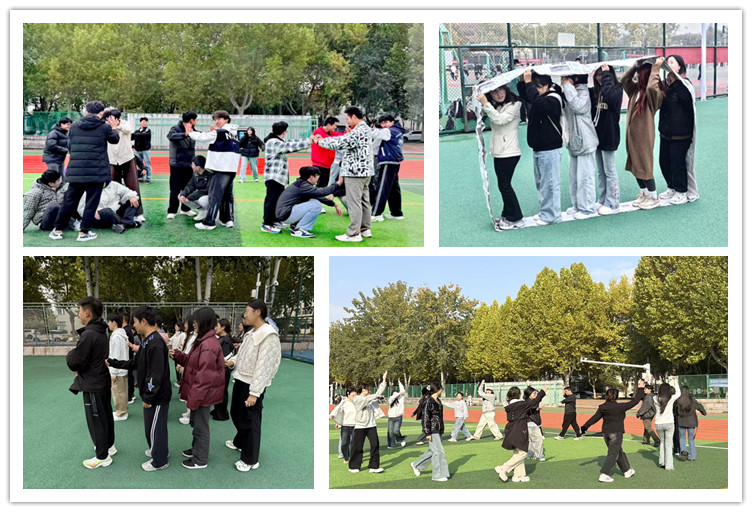 此次活动由学生工作处提供心理团建方案,二级学院结合专业特色以班级为单位组织实施。活动以团体心理训练为主要形式,融合了竞技、协作与趣味三大元素,围绕团队组建、破冰互动、合作竞争和总结分享四个阶段依次展开。活动设置注重趣味激发与合作深化,既有“穿越沼泽”“无敌风火轮”等挑战体能、激发活力的动态项目,又有“密码传递”“筑梦管道”等考验智慧、凝聚默契的协作任务。同学们在沉浸式的体验中全情投入、热情高涨。动态项目中,呐喊声与欢笑声交织,大家手脚并用、协力突破体能极限;协作任务时,专注与默契在眉眼间流转。这场身心相容的旅程让每位同学在协同挑战时重新认识了彼此的闪光点,悄然播种下信任与理解的种子。