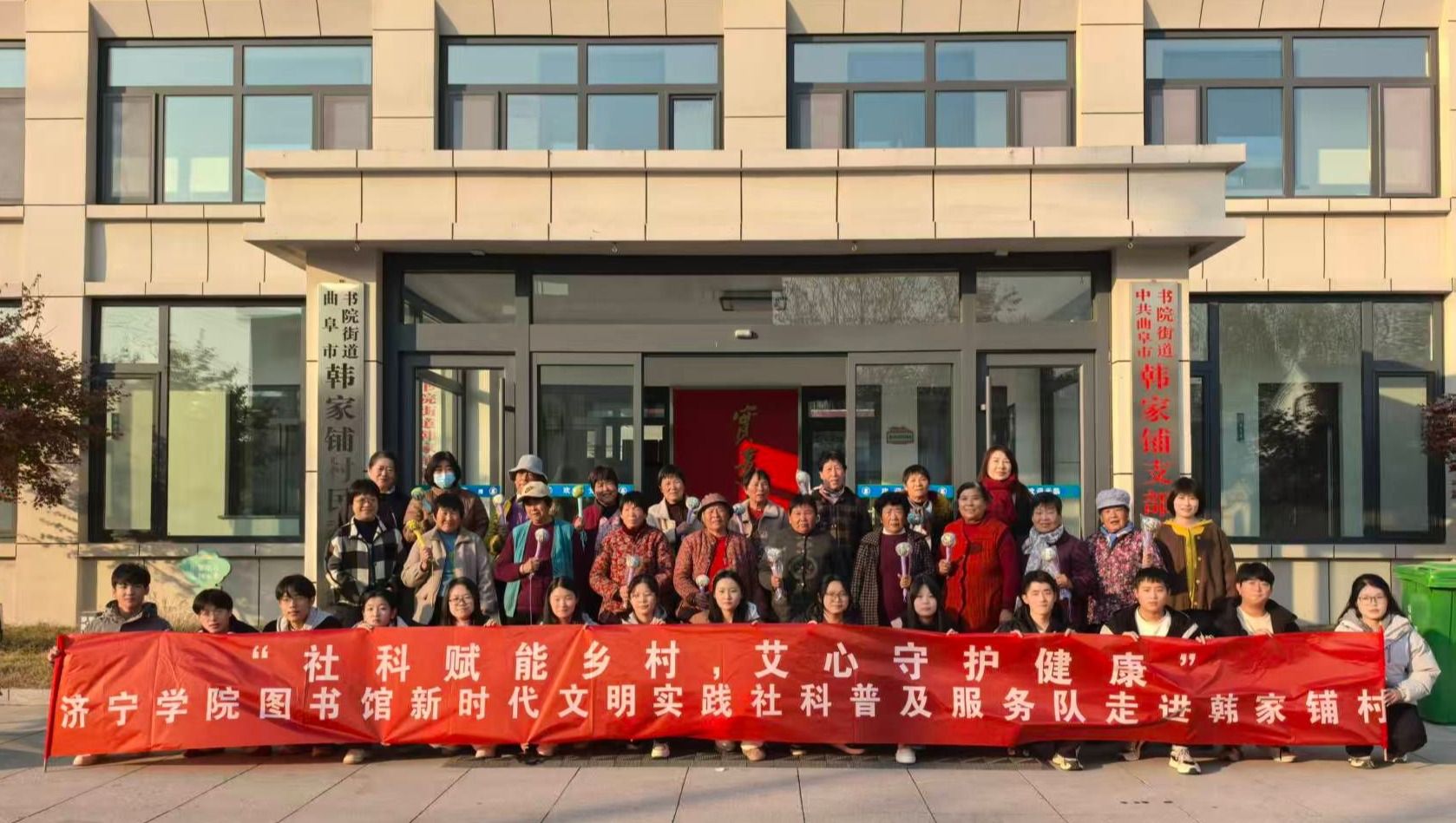 初冬寒意渐浓,为充分发挥我校图书馆山东省社科普及教育基地的作用,关心关怀乡村留守老人的身心健康和文化生活,11月20日下午,济宁学院图书馆组织师生走进曲阜市书院街道韩家铺村,开展以“社科赋能乡村,艾心守护健康”为主题的社科普及志愿服务活动,为乡村老人送去知识、技能与温暖陪伴。