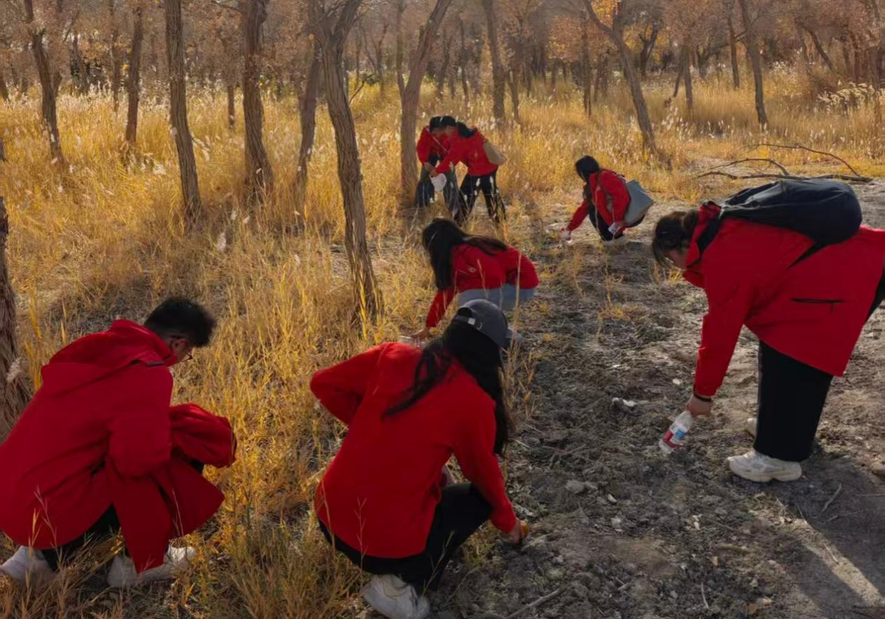 为弘扬志愿服务精神,感悟胡杨品格,近日,在济宁援疆指挥部的支持下,济宁学院2025秋季援疆支教团利用周末时间,前往泽普金湖胡杨国家森林公园开展了一场环保志愿服务活动。