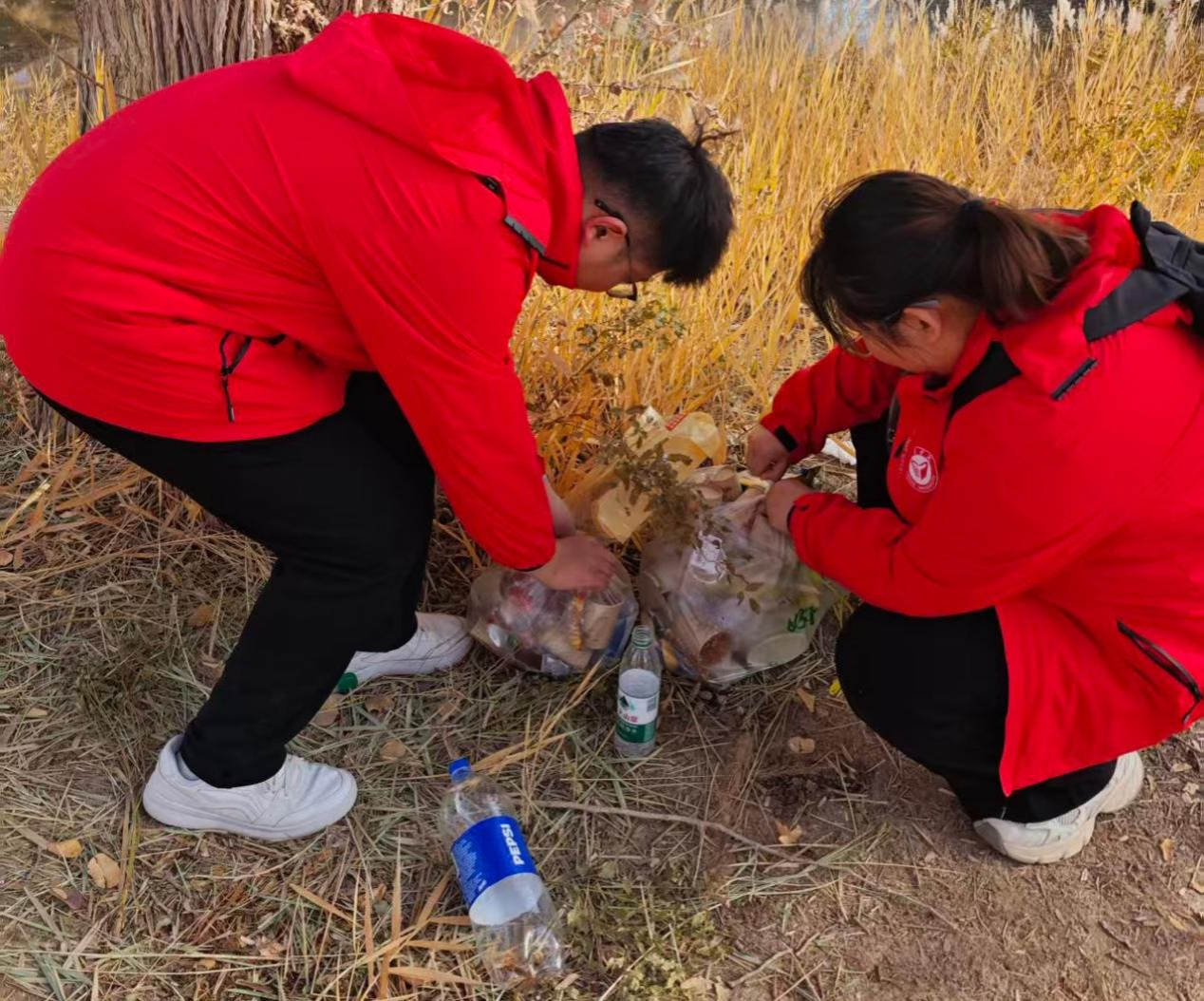 活动当日,队员们身着统一标识的服装,精神饱满,意气风发。在明确分工后,队员们迅速投入到环境清理工作中。大家手持清洁工具,分工协作,细致认真,沿着蜿蜒的景区步道、深入静谧的林间空地、仔细巡查碧波荡漾的水域周边,不放过任何一处卫生死角。队员们一次次弯腰俯身,细心捡拾被丢弃的塑料瓶、食品包装袋、纸屑和烟头等各类杂物,所过之处,环境面貌焕然一新。他们忙碌而专注的身影,与金秋胡杨的璀璨色彩交相辉映,构成了公园内一道亮丽而动人的风景线,以实际行动表达了对新疆这片壮美山河的热爱与守护,赢得了公园管理人员和往来游客的频频赞许与高度认可。