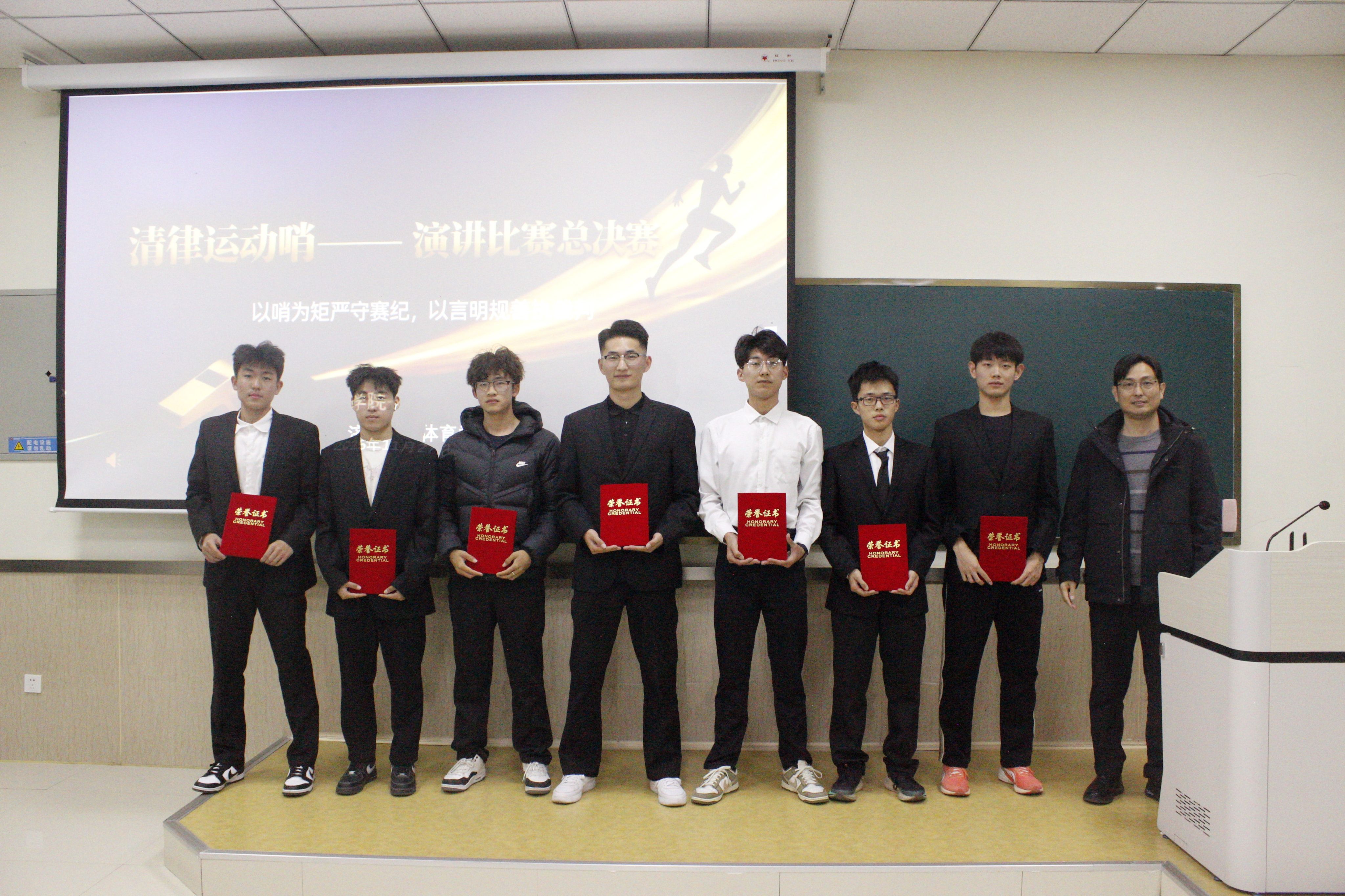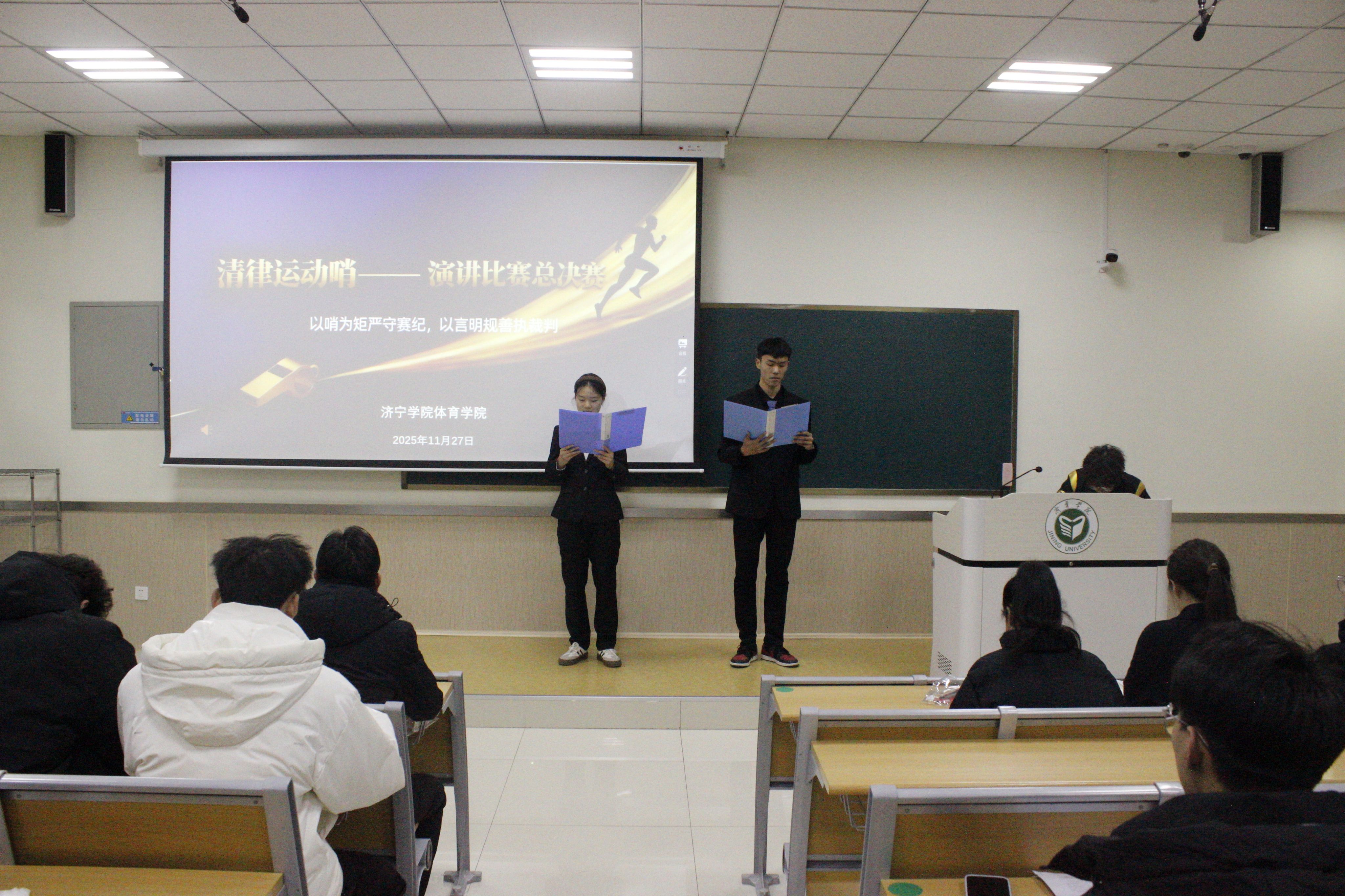 11月27日晚,体育学院“清律运动哨”廉洁体育演讲比赛决赛在3C101 教室成功举办。体育学院党委副书记蒿鹏、团委(学生科)正科级干部徐海峰出席活动并担任评委,百余名师生代表观看比赛。
