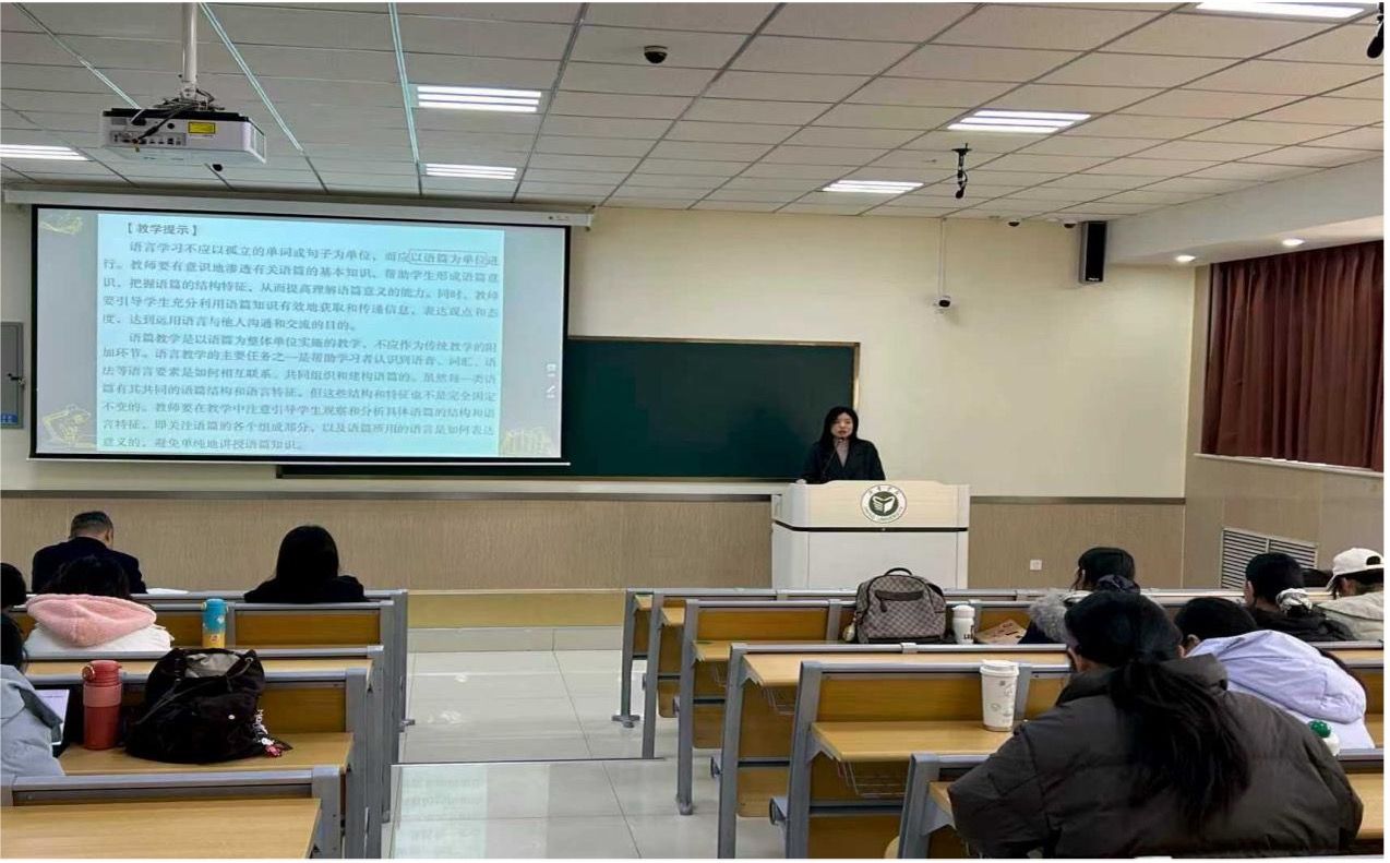 11月27日下午,外国语学院第四十四期“师范生从业技能培养工作坊”在3#C101成功举办。济宁市第一中学高一英语教研组备课组长程艳红应邀作题为《“阅”析文本,“读”具匠心——核心素养视域下的思辨阅读》的专题讲座,学院2023级英语师范专业同学现场聆听。报告由学院英语(师范)专业负责人吴瑞民老师主持。