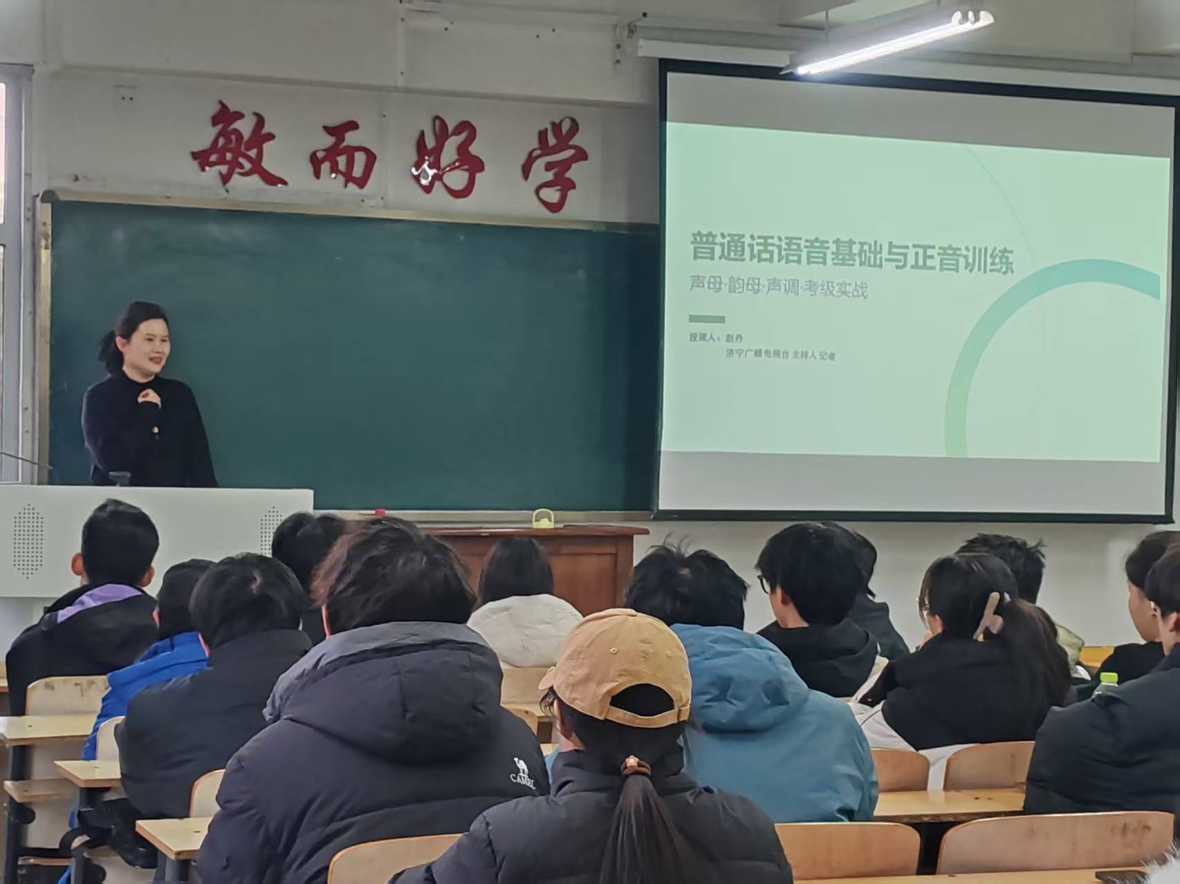 11月20日下午,济宁学院融媒体中心《普通话语音基础与正音训练》讲座在8#217顺利举行。本次讲座邀请济宁广播电视台主持人赵丹老师主讲,融媒体中心全体成员参与学习。