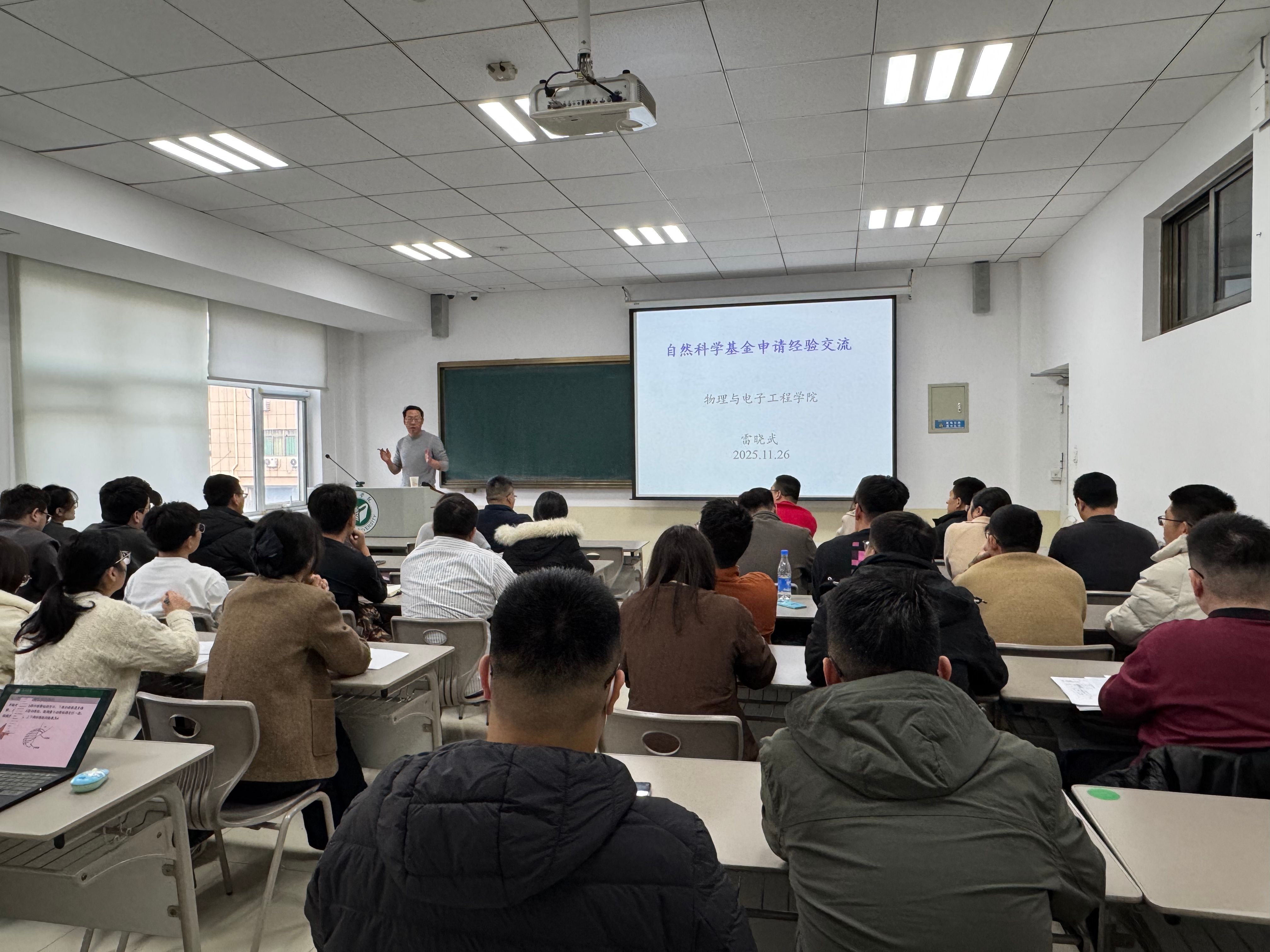 为扎实推进学科建设,营造浓厚学术氛围,提升教师科研项目申报能力,物理与电子工程学院于11月26日下午邀请科研处副处长雷晓武教授在9#212教室举行讲座,就国家自然科学基金申请进行专项指导,并介绍了稀土功能材料实验室的建设情况。会议由学院院长岳现房主持。