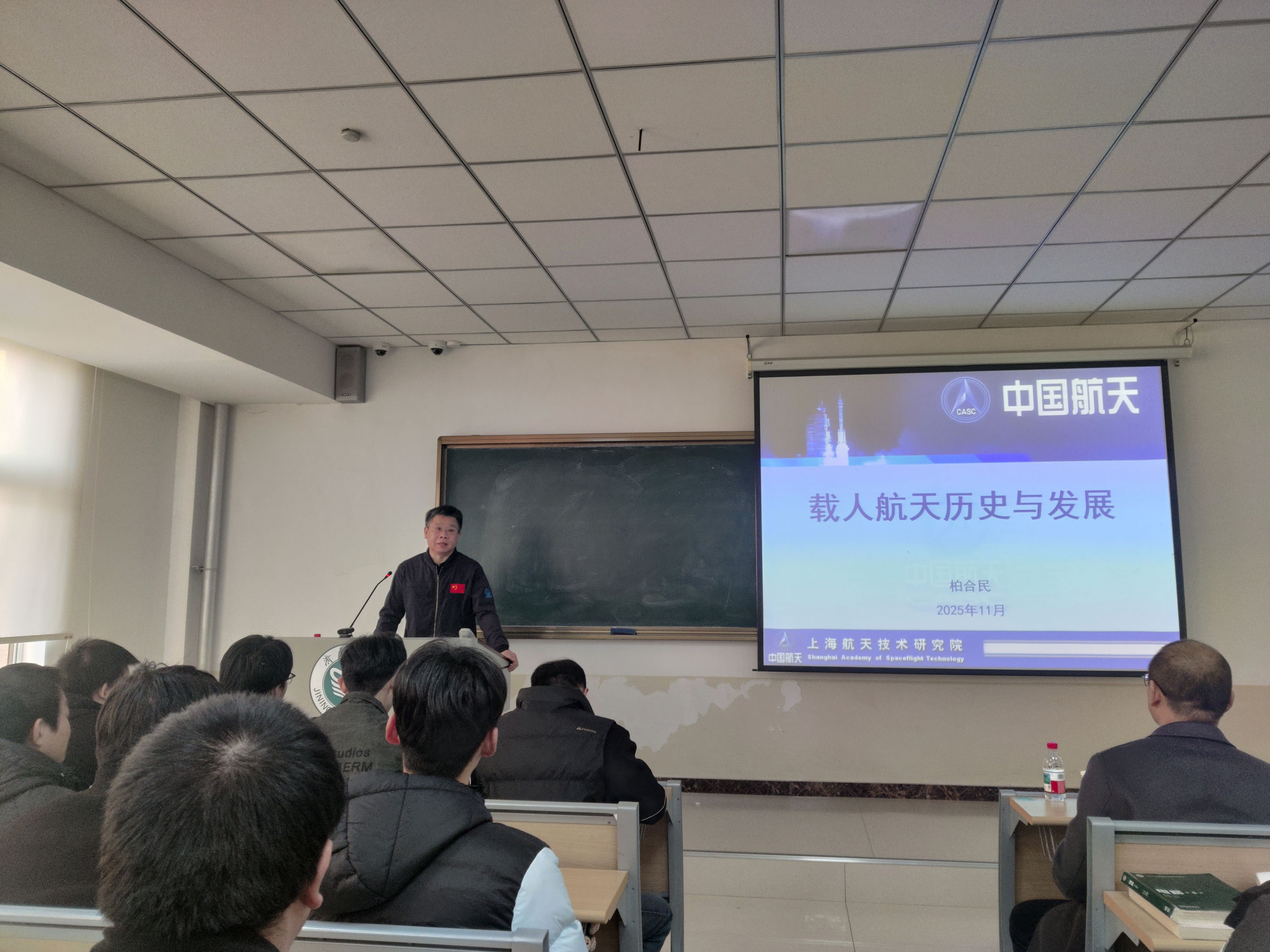 11月28日下午,上海宇航系统工程研究所科技委常委、载人航天工程空间站系统副总设计师柏合民研究员应邀在9号楼A401做了“载人航天的历史与发展”学术报告,机电工程学院党委书记李效民、博士教师以及相关专业学生近百人参加报告会。报告会由机电工程学院院长张营主持。