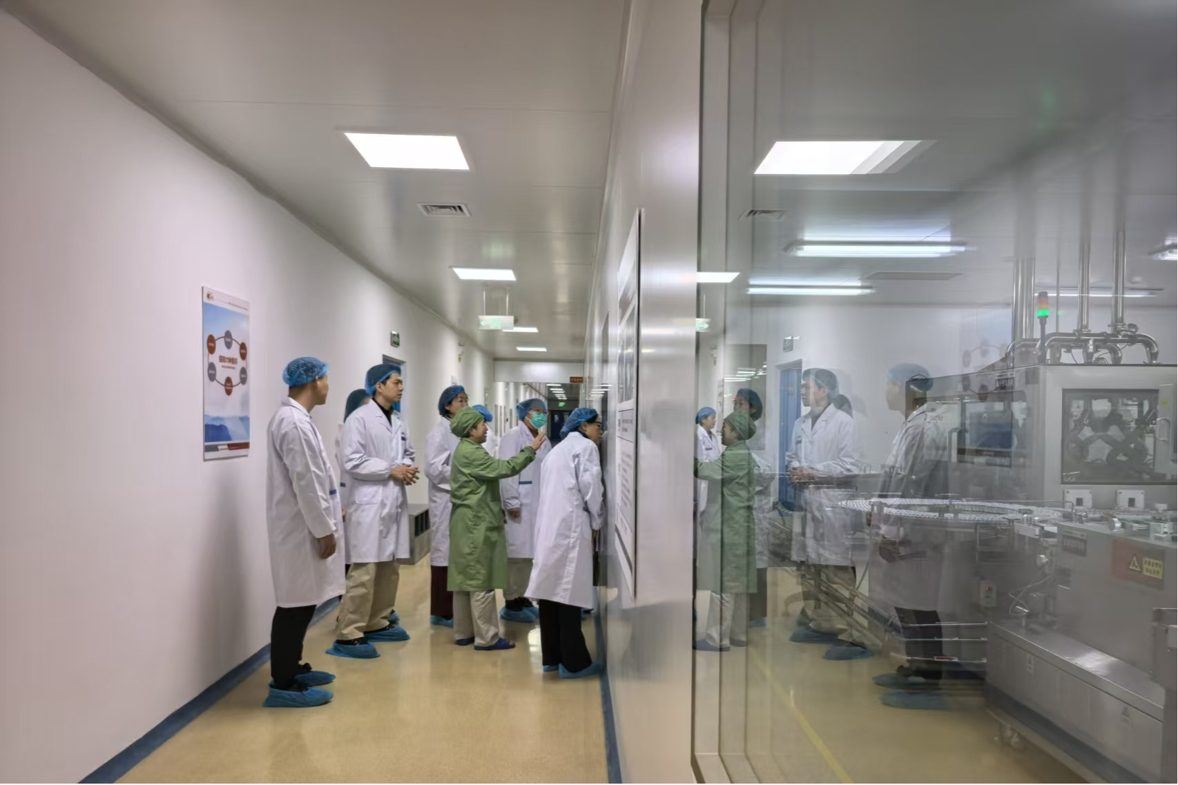 活动中,博士团参观鲁抗医药生产加工车间,沉浸式学习无菌制剂生产全流程。大家认真与企业技术人员交流,深入了解现代化制药企业的生产管理体系与技术创新方向,为后续教学科研与企业需求对接积累第一手资料。