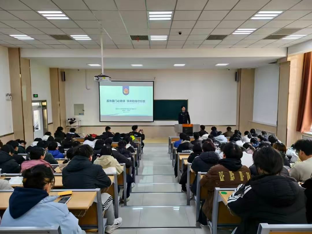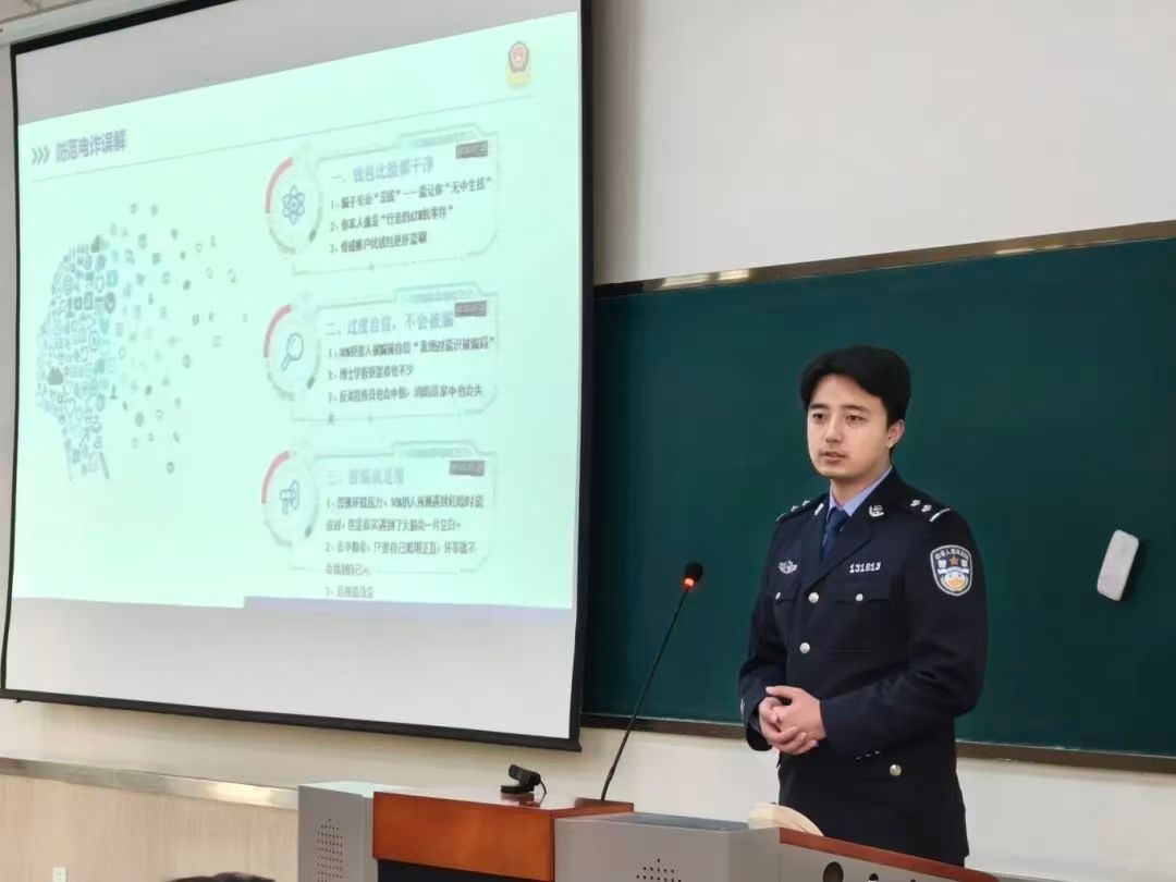 为进一步提升学生防范电信网络诈骗的意识和能力,12月4日,化学化工与材料学院在9D201教室开展反诈专题讲座。曲阜市公安局刑事侦查大队特勤中队程鸣警官受邀主讲,近200名学生参加,活动由学院辅导员李天乐主持。