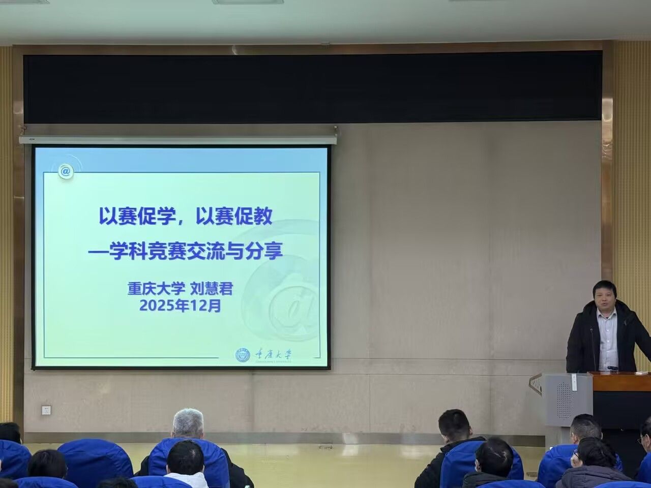 为深化竞赛与教学融合,提升创新人才培养实效,12月10日下午,计算机科学与工程学院特邀重庆大学刘慧君教授作题为“创新实践能力的学科竞赛教学模式探索”专题报告。学院院长李鹏、副院长翟鹏、团委副书记李德法出席活动,相关学科带头人、骨干教师及学生代表参加。