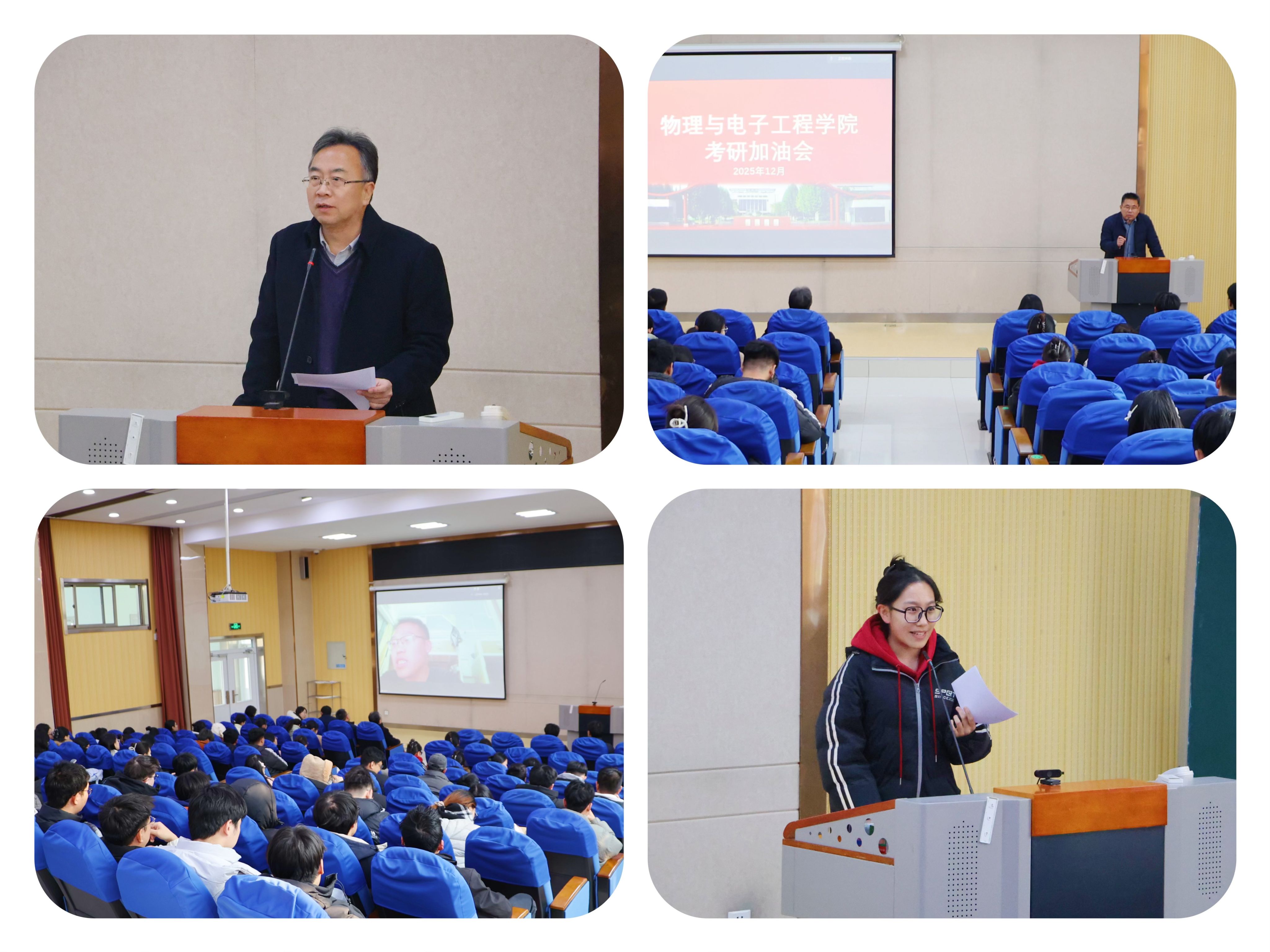 本次考研加油会,既是一次振奋精神的动员会,也是一次传递温暖的关爱会。它充分体现了物理与电子工程学院对学生成长成才的高度重视与人文关怀,极大地鼓舞了考研学子的斗志,坚定了他们的必胜信心。衷心祝愿物理与电子工程学院2026届全体考研学子笔下生花,得偿所愿,一战成硕,金榜题名。
