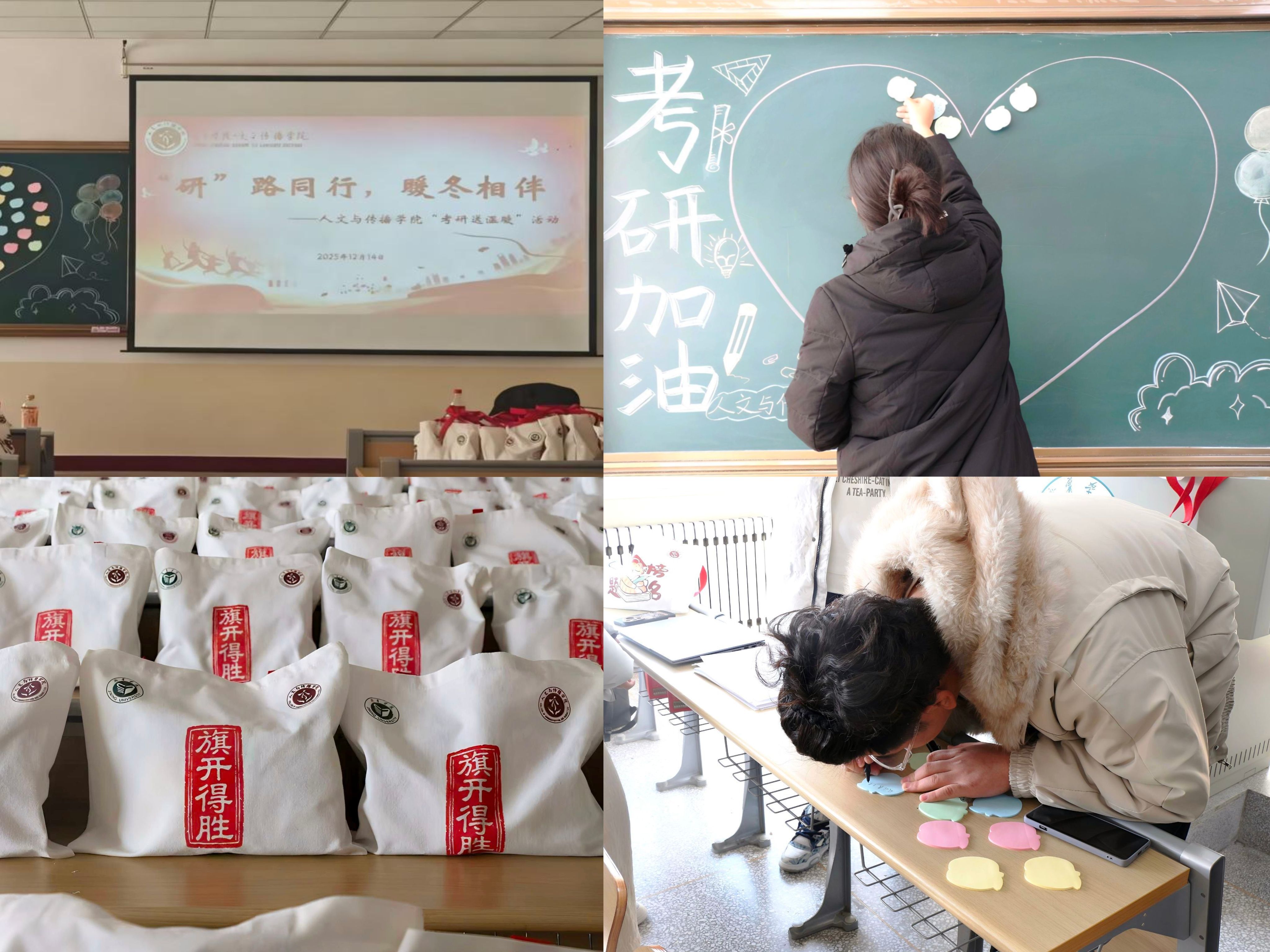 考研冲刺阶段,为缓解考研学子压力,传递鼓励与温暖,近日,人文与传播学院开展为2026届毕业生考研学生送温暖活动。学院领导、辅导员和专任老师们通过各种形式为学生送去祝福和温暖。