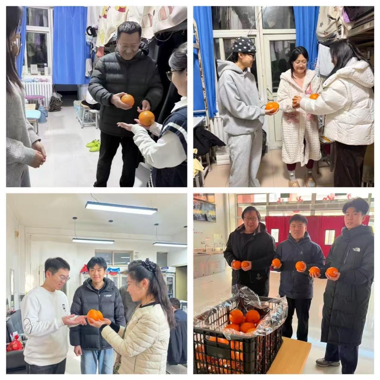 12月15日,学院党委副书记岳现超携全体毕业班辅导员深入考研自习室、学生宿舍与学院活动室,把寓意“心想事成”的橙子送到学子手中。一颗颗鲜橙,承载的是学院最柔软的牵挂;一句句叮咛——“科学规划时间、稳住心态、劳逸结合”——化作冲刺路上最坚实的底气。针对学子们提出的备考焦虑、后勤保障等问题,辅导员们现场耐心解答,并记录相关诉求以便后续跟进解决。
