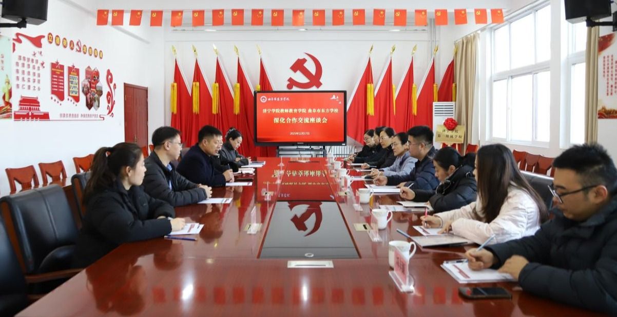 12月17日,济宁学院教师教育学院与曲阜市东方学校深化合作交流座谈会在曲阜市东方学校举行。教师教育学院院长李群等院领导及教师代表,曲阜市东方学校校长王廷志等校领导及骨干教师代表共同出席。