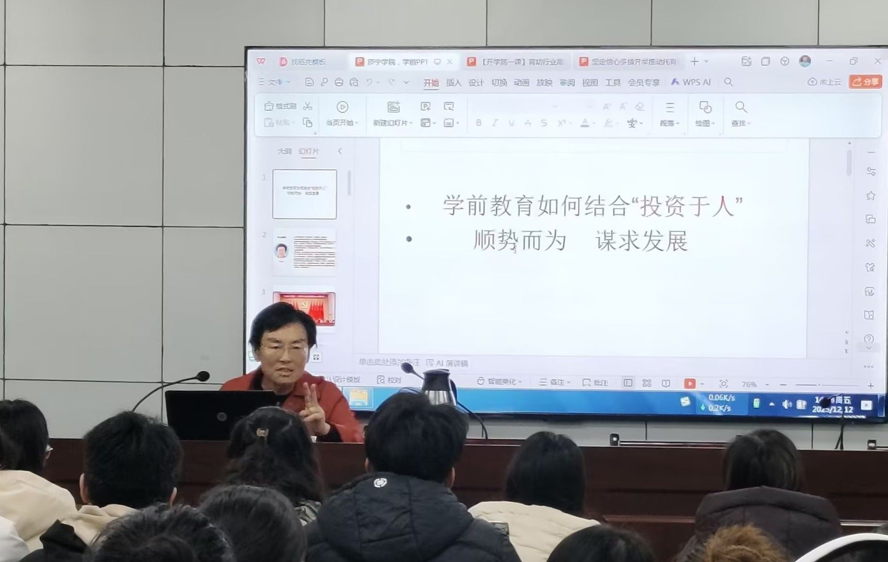 为主动适应托幼一体化发展新趋势,深化人才培养模式改革,12月12日下午,教师教育学院举办“托幼一体化人才培养”专题讲座与研讨活动。活动特邀济宁市人大一级巡视员、原济宁市托育指挥部常务副指挥长陈颖担任主讲,学前教育专业专任教师及2022级全体学生共同参加。