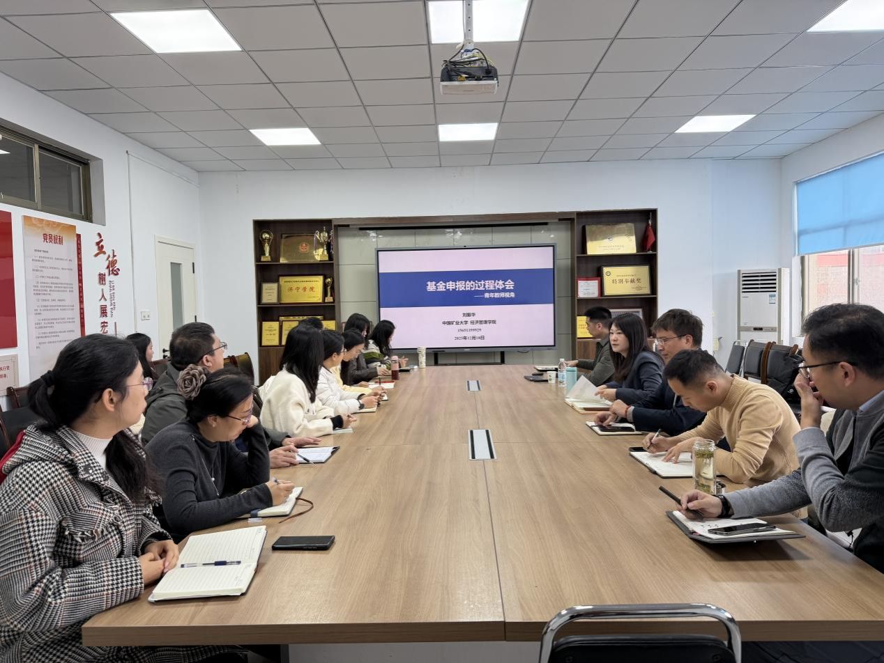 为提高教师科研创新水平,提升教师科研项目申报能力,帮助教师更好申报2026年高级别科研项目,经济管理学院于12月18日上午举办“基金申报的过程体会——青年教师视角”专题学术报告。报告由学院教学科研办公室主任韩露主持,中国矿业大学刘振华副教授应邀主讲,院长助理徐琮以及学院部分教师参加报告。