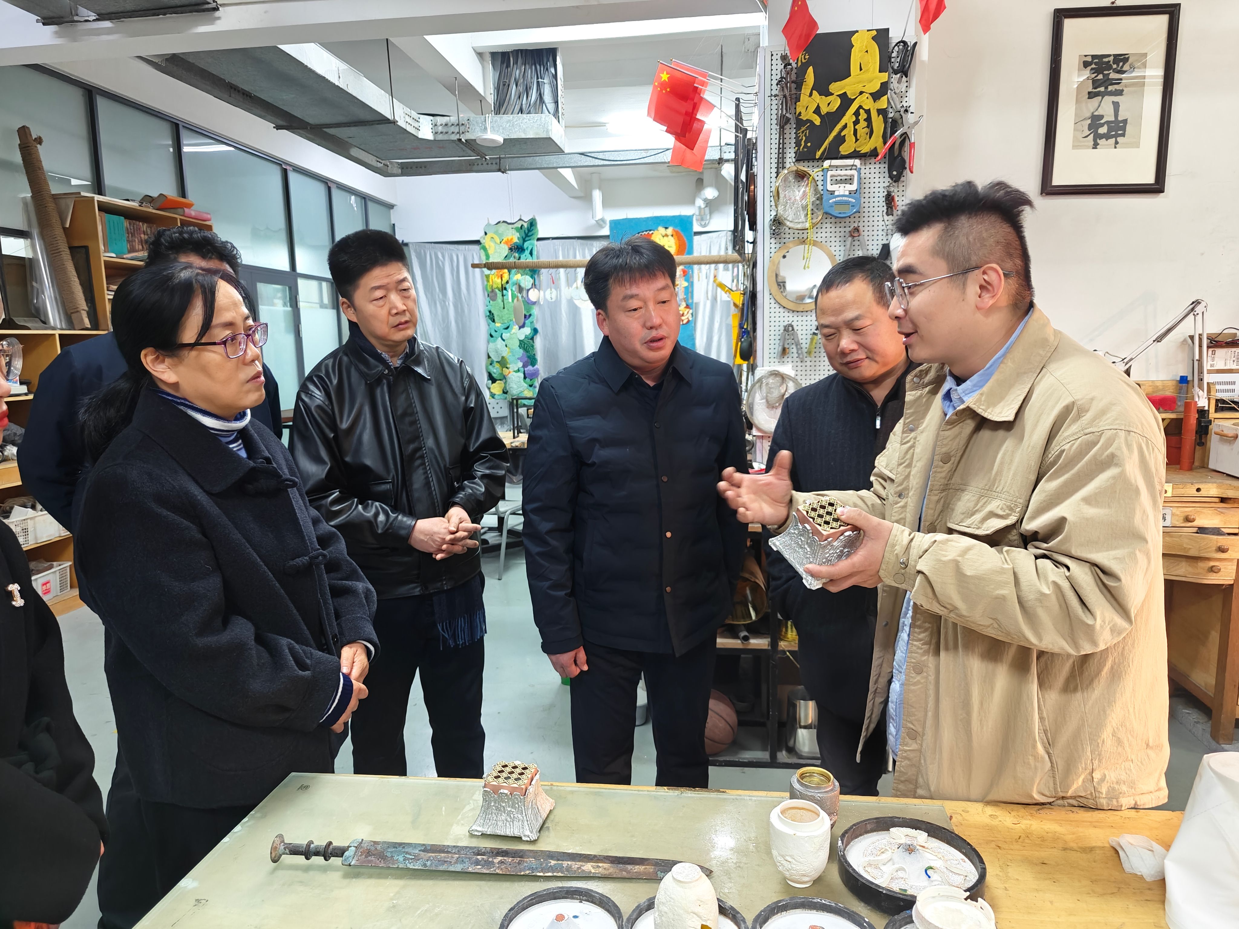活动期间,与会代表实地参观了学院儒家文化文创基地,李文超详细介绍了学院在非遗项目保护、研究与教学、实践创新等方面的积极探索与阶段性成果。