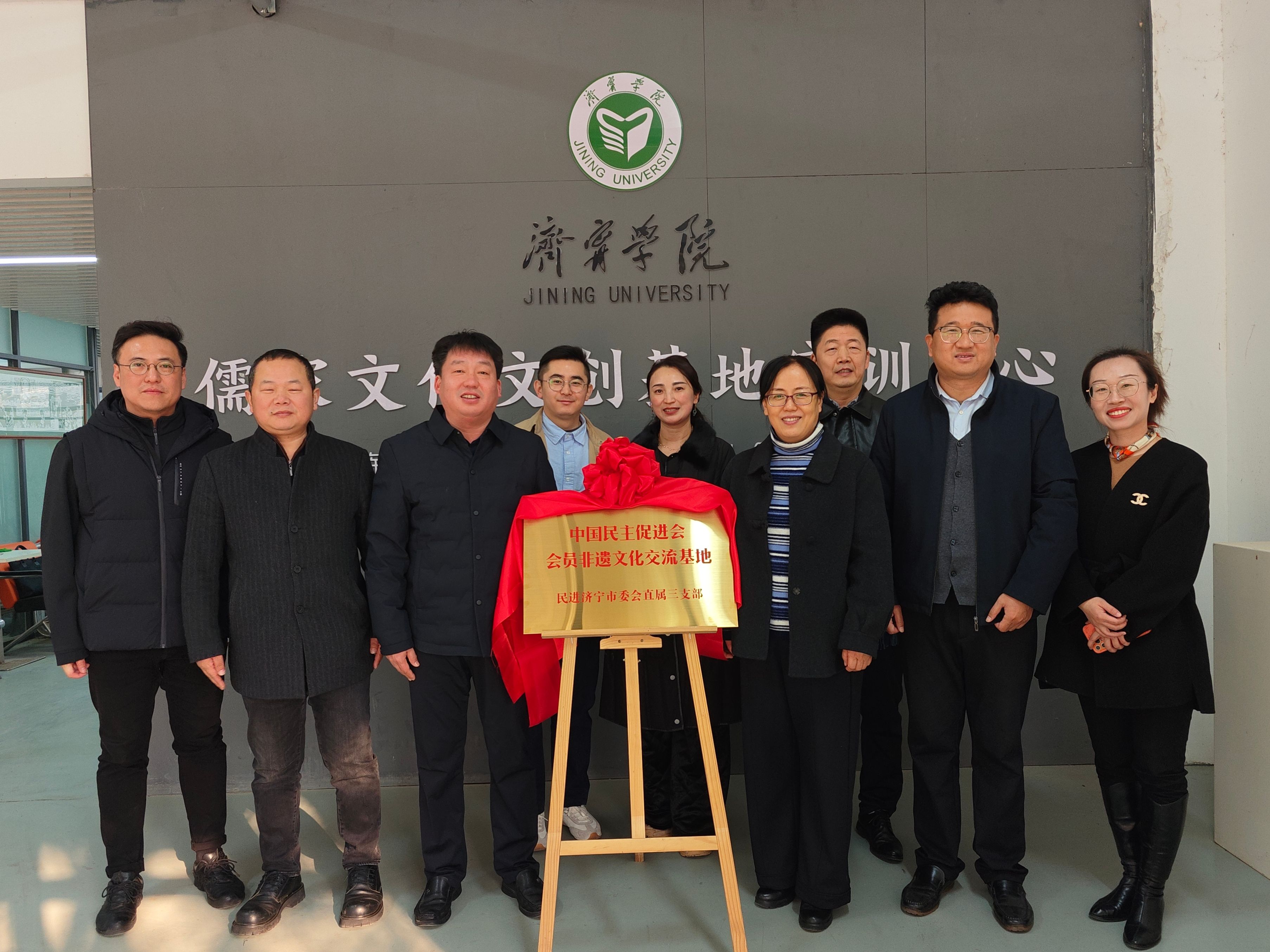 12月19日上午,“中国民主促进会会员非遗文化交流基地”项目揭牌仪式在高新区大学园济宁学院美术学院儒家文化文创基地举行。民进济宁市委会秘书长张学鹏,济宁学院应用型人才培养基地主任苑壮东、美术学院院长张继华、副院长刘乾等出席活动。仪式由张继华主持。